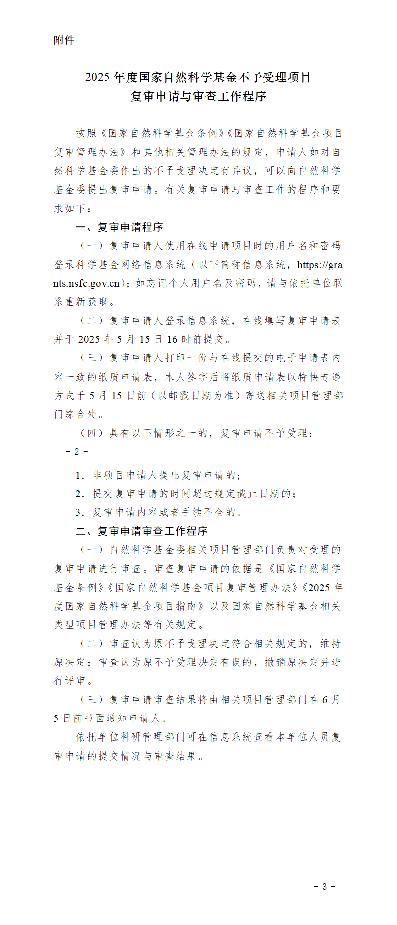 附件:2025年度國家自然科學基金不予受理項目復審申請與審查工作程序
