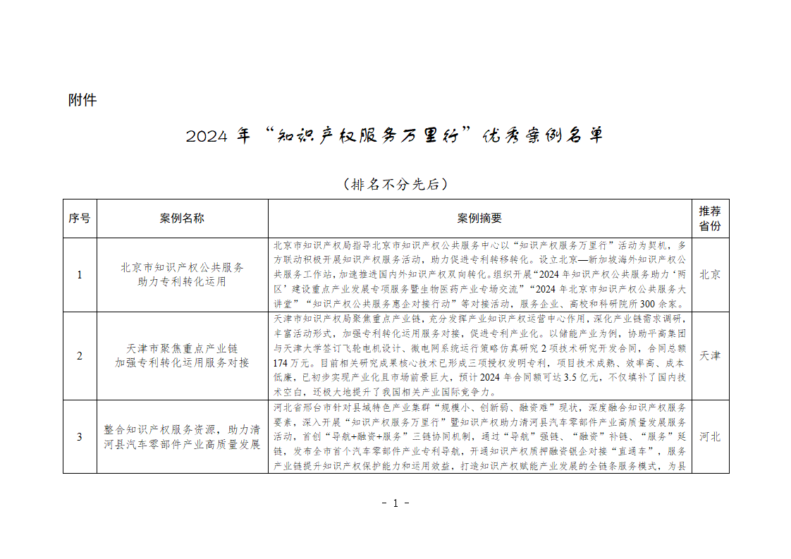 國家知識產權局|2024年“知識產權服務萬里行”活動優秀案例公布
