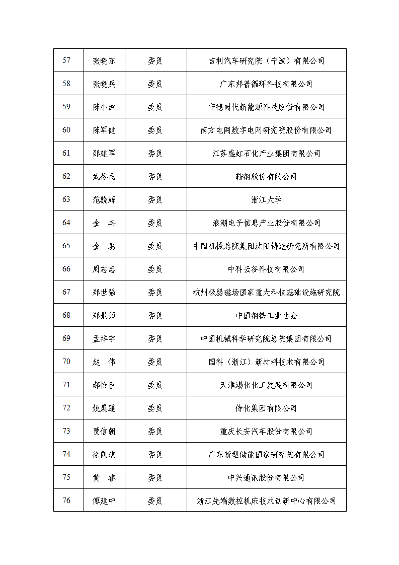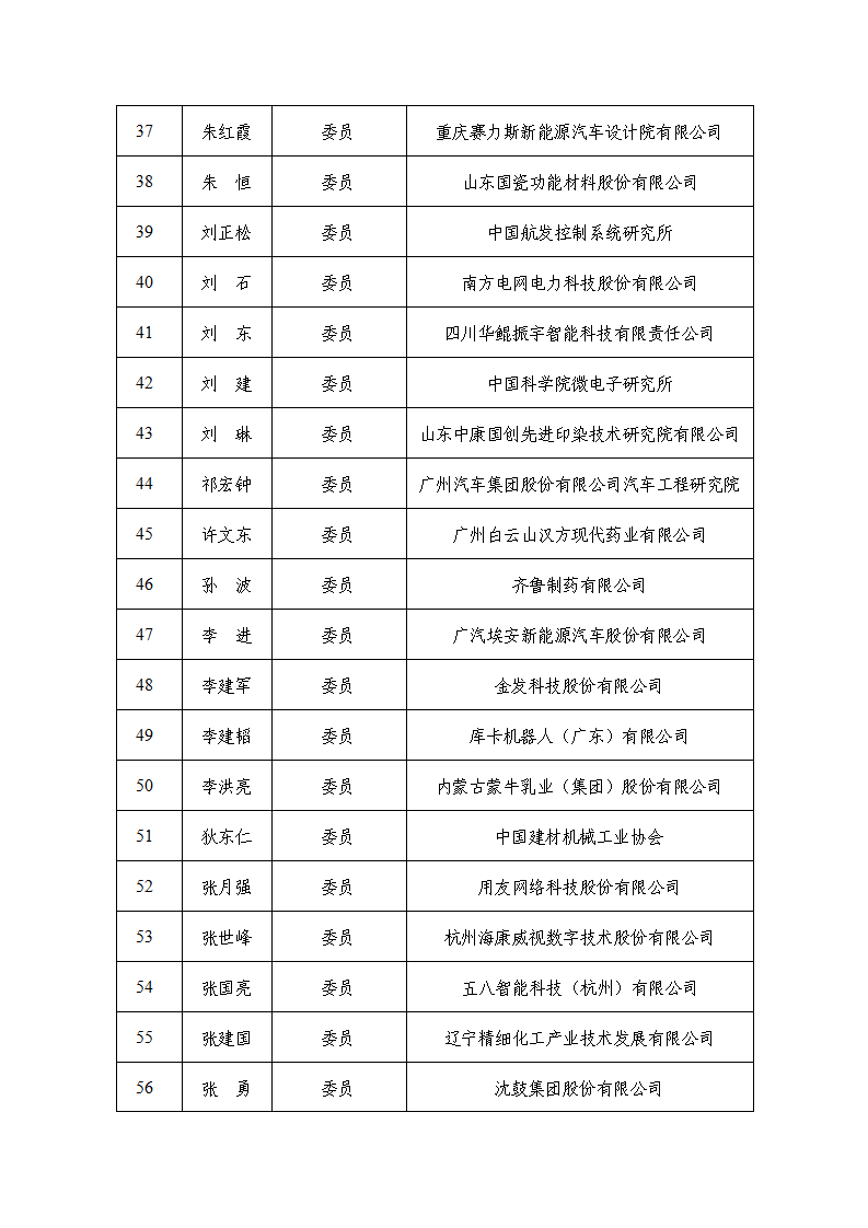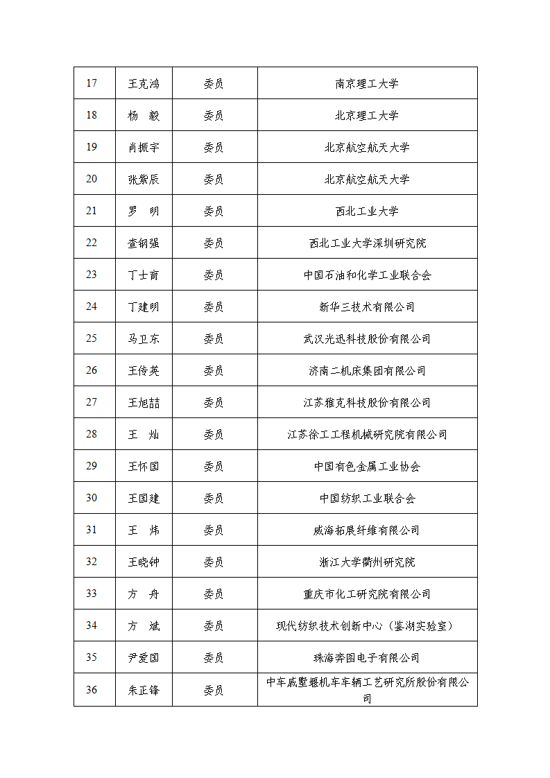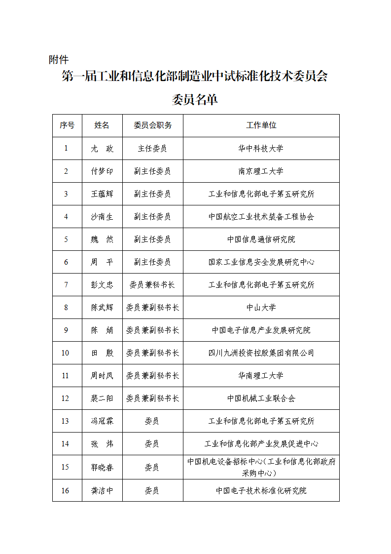 附件:第一屆工業和信息化部制造業中試標準化技術委員會委員名單