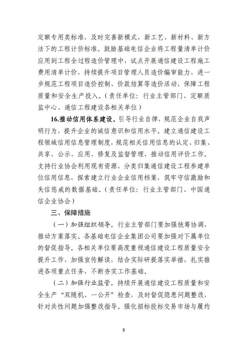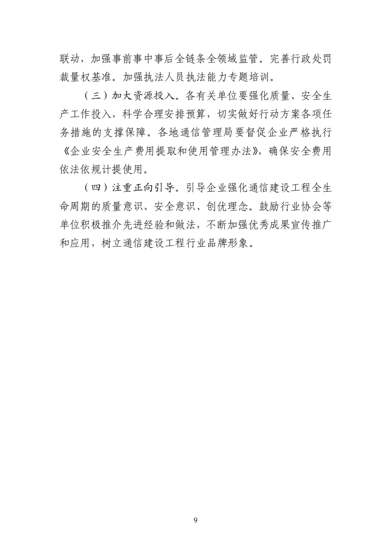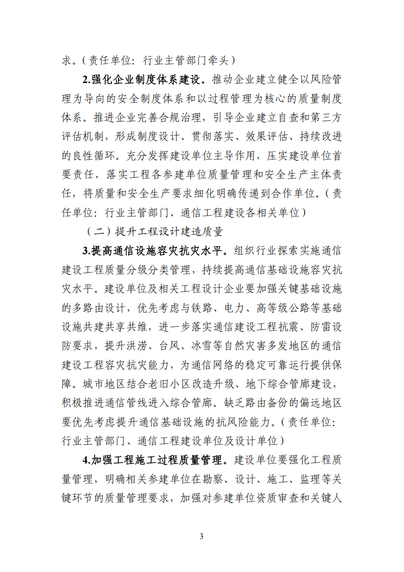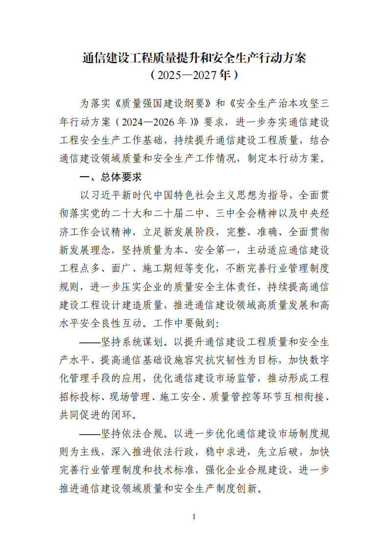 《通信建設工程質量提升和安全生產行動方案(2025-2027年)》的通知