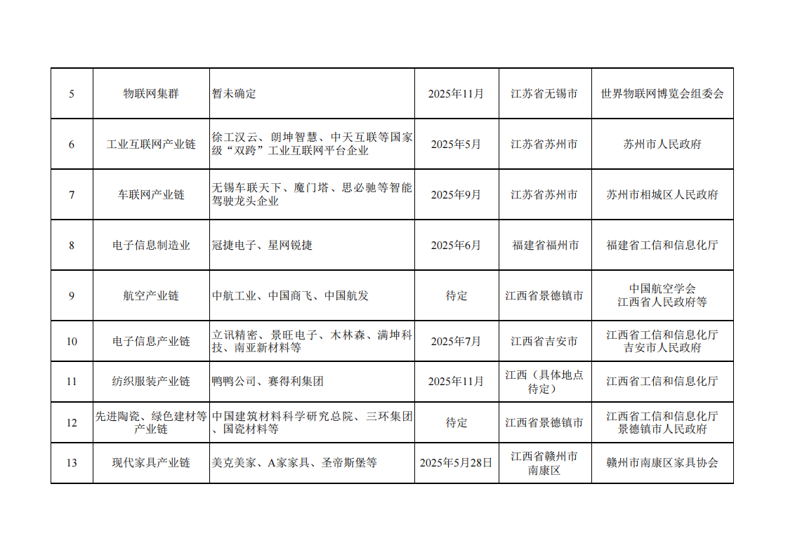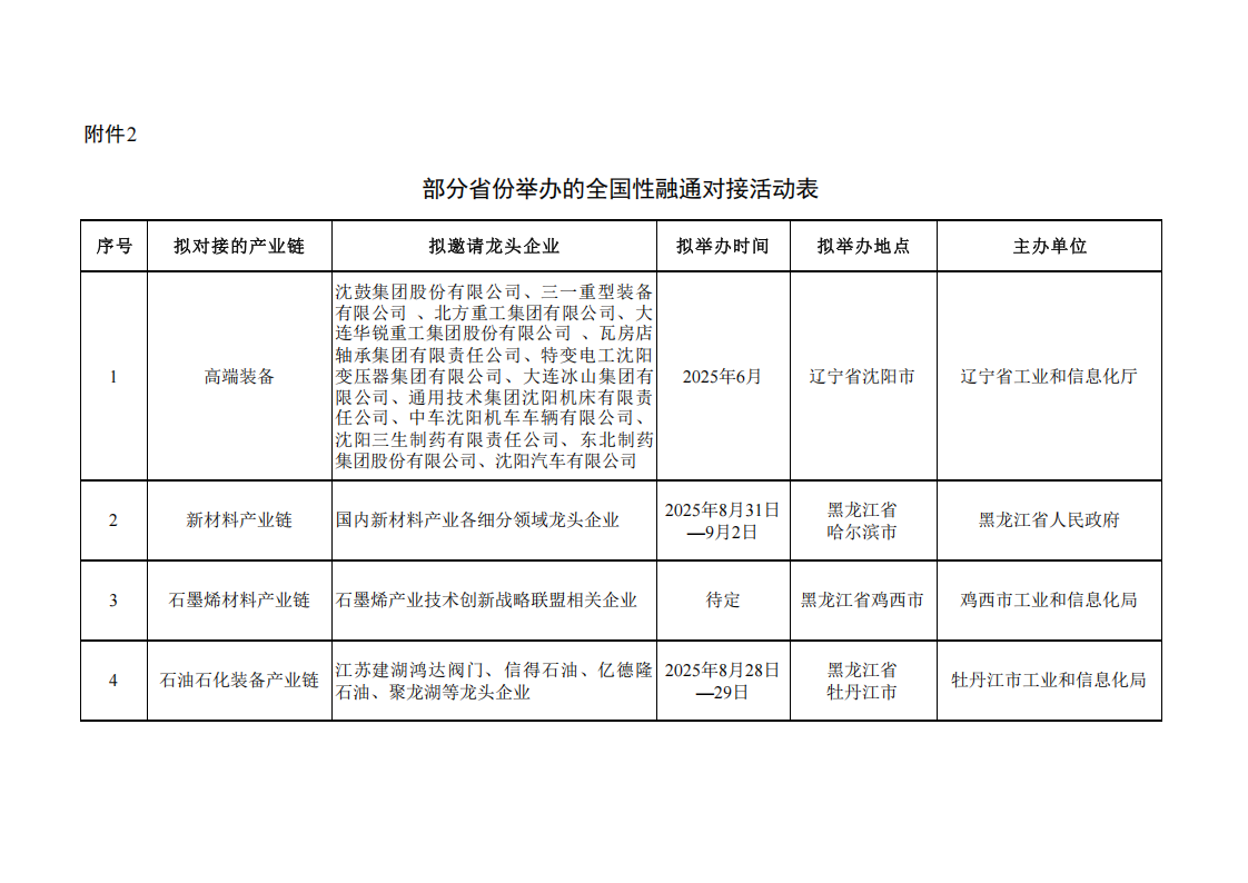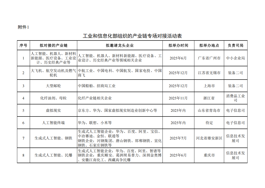 附件:1.工業和信息化部組織的產業鏈專場對接活動表