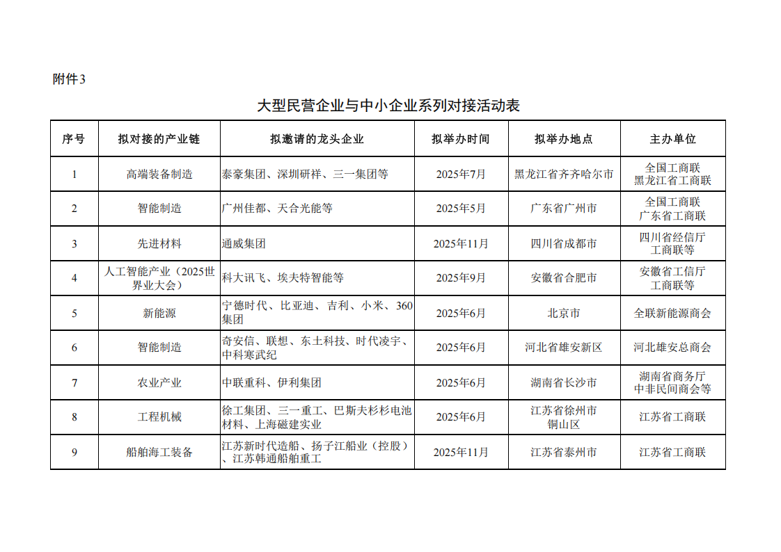 3.大型民營企業與中小企業系列對接活動表