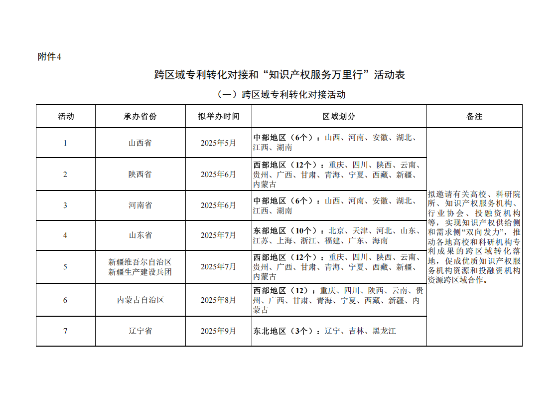 4.跨區域專利轉化對接和“知識產權服務萬里行”活動表
