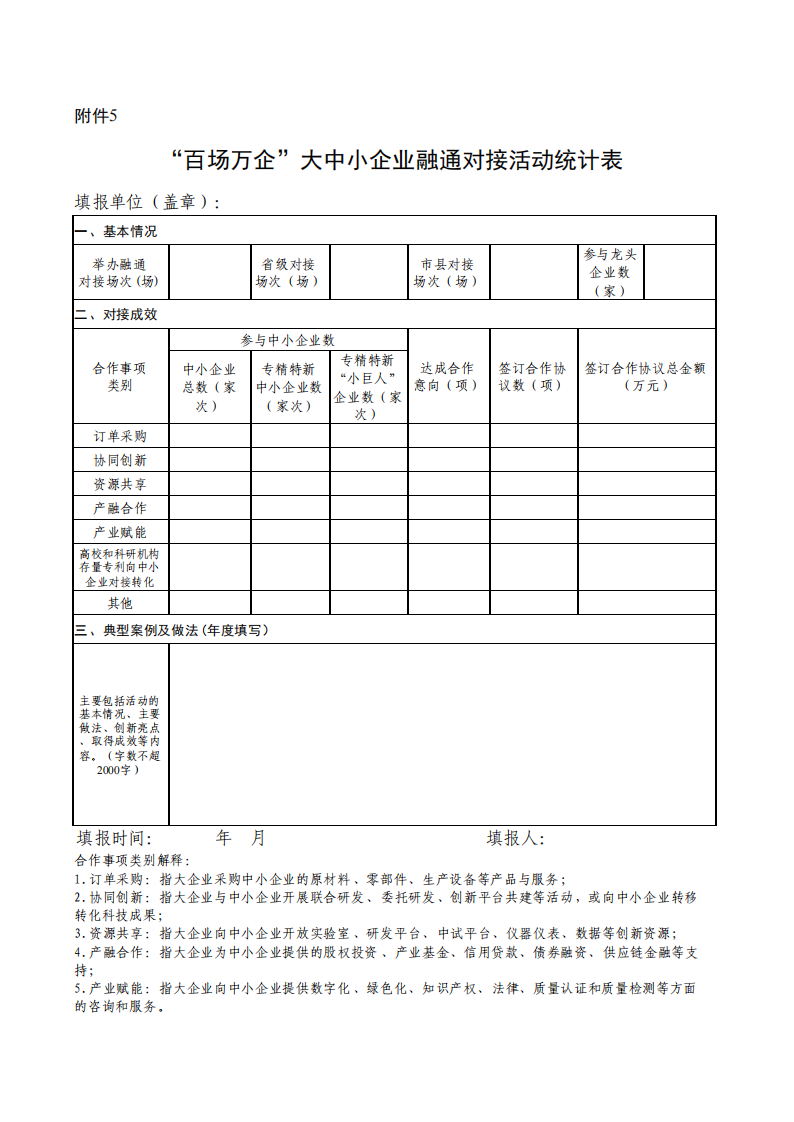 5.“百場萬企”大中小企業融通對接活動統計表