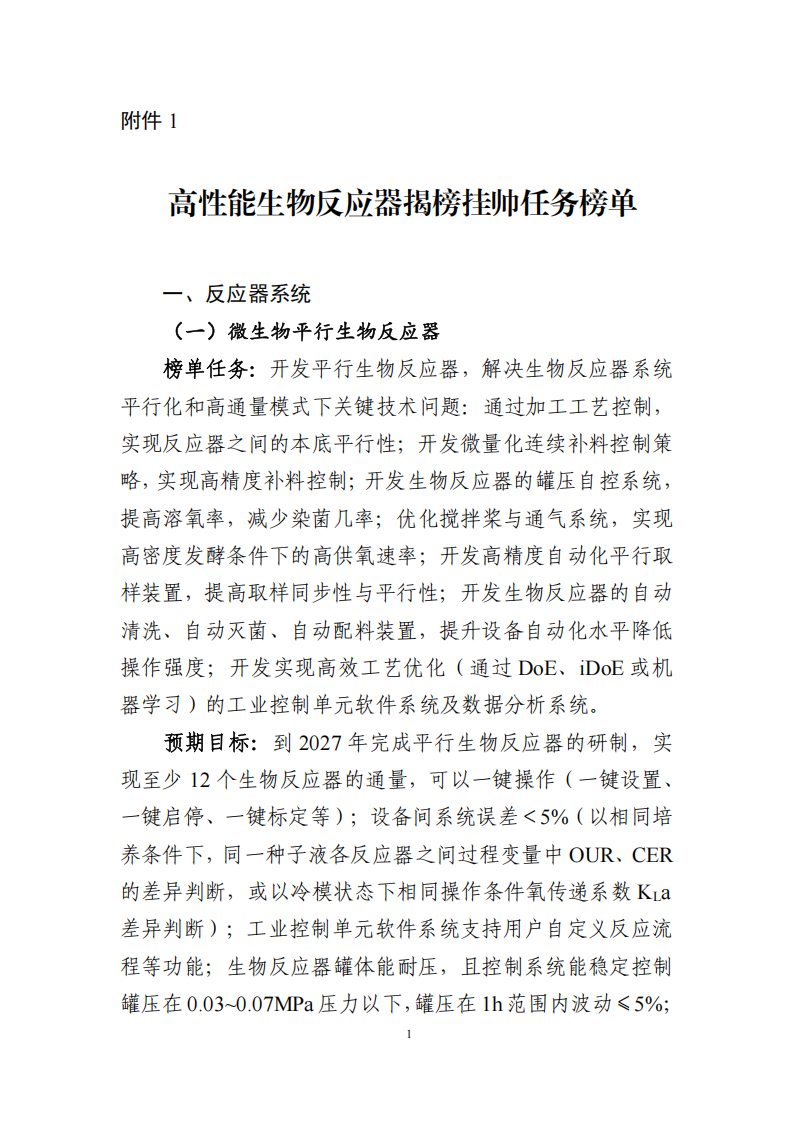 附件:1.高性能生物反應器創新任務揭榜掛帥榜單