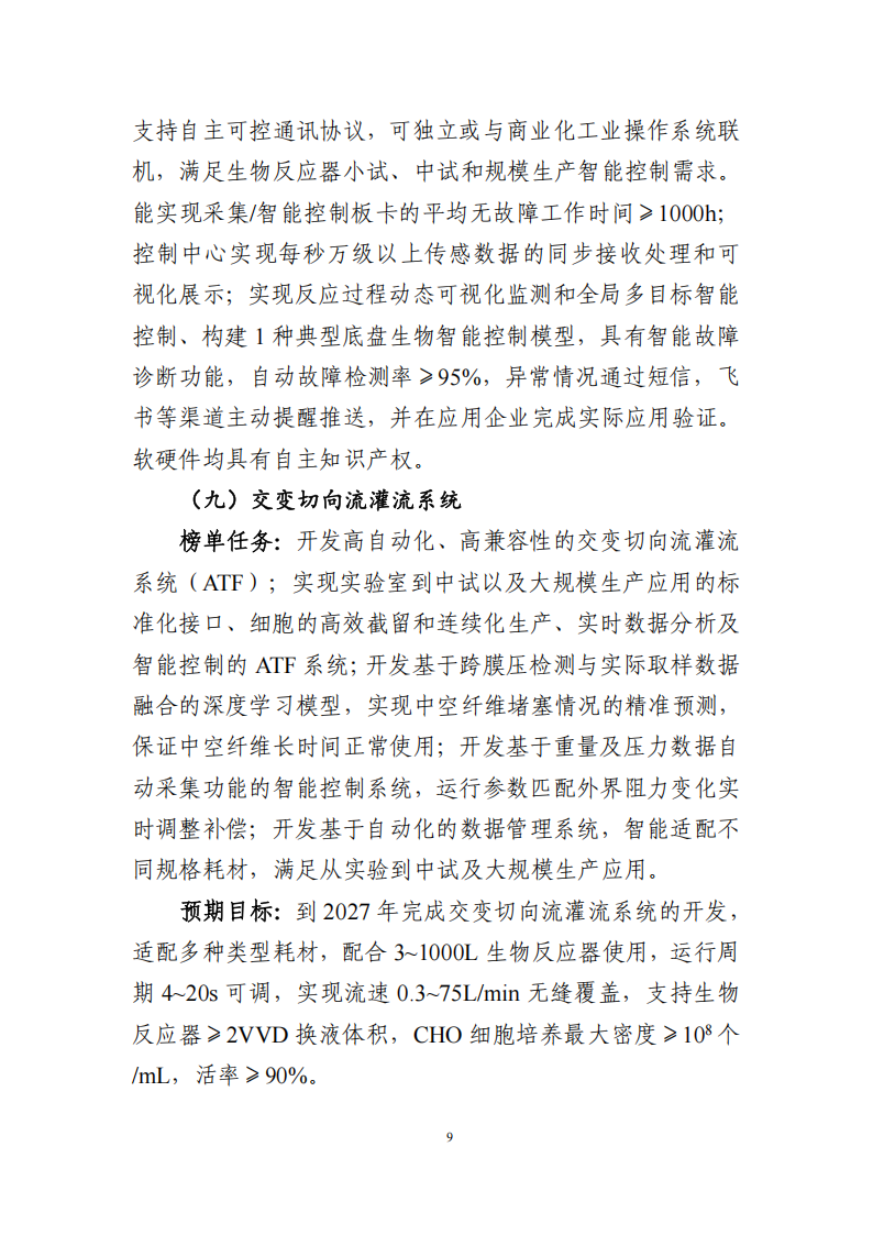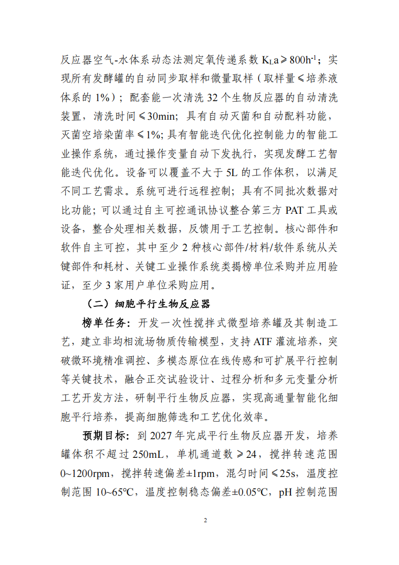 聚焦反應器系統、關鍵部件與耗材、工業操作系統3類9項揭榜任務,遴選培育一批掌握關鍵核心技術、具備較強創新能力的優勢單位,突破一批標志性技術裝備,培育典型應用場景,加速新技術新產品落地應用,提升高性能生物反應器“技術研發—供需匹配—生產制造—規模應用”一體化發展能力。