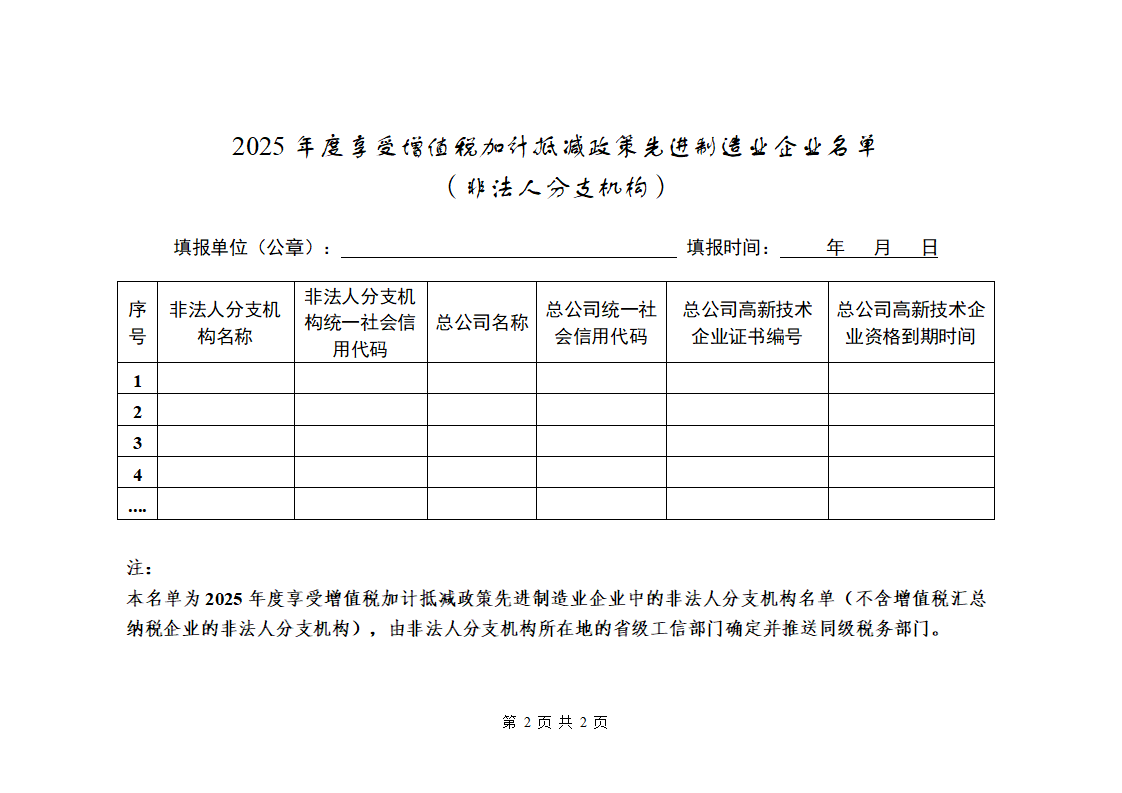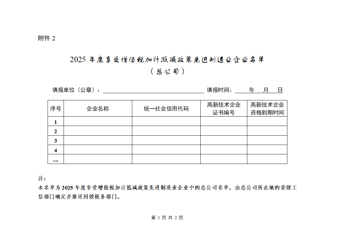 三部門關于2025年度享受增值稅加計抵減政策的先進制造業企業名單制定工作有關事項的通知