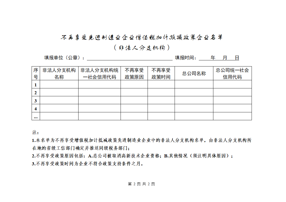 一、本通知所稱名單是指財政部、稅務總局2023年第43號公告中提及的享受增值稅加計抵減政策的先進制造業企業名單。先進制造業企業是指高新技術企業(含所屬的非法人分支機構,以下簡稱分支機構)中的制造業一般納稅人。高新技術企業是指按照《科技部?財政部?國家稅務總局關于修訂印發〈高新技術企業認定管理辦法〉的通知》(國科發火〔2016〕32號)規定認定的高新技術企業。