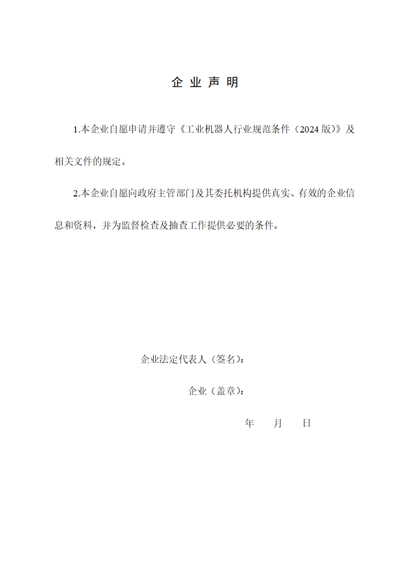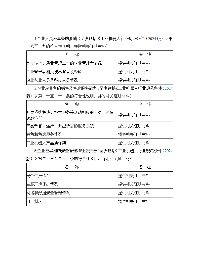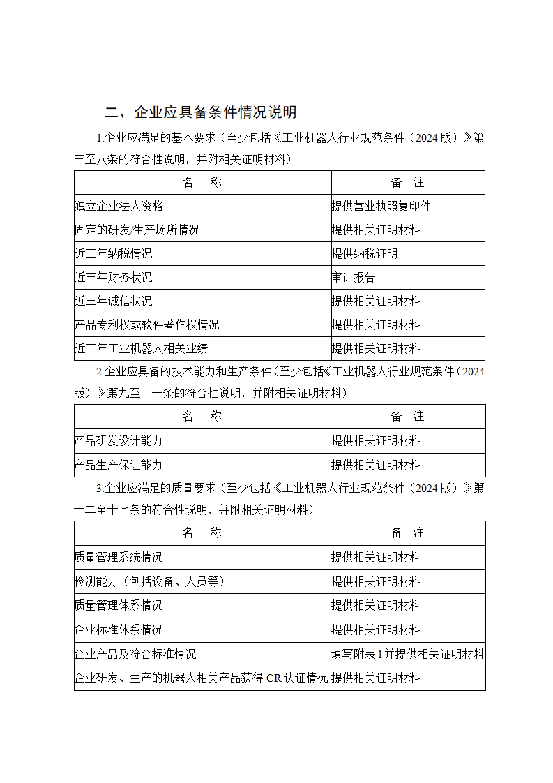 二、工業機器人相關企業自愿申請,如實填報《工業機器人行業規范企業申請報告》(附件1,以下簡稱《申請報告》),并提供相關證明材料。申請材料報送至所在地省級工業和信息化主管部門或所屬中央企業。