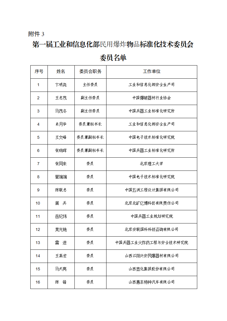 3.第一屆工業和信息化部民用爆炸物品標準化技術委員會委員名單
