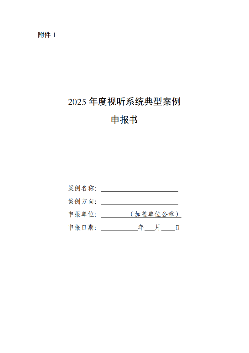 (三)各申報單位填報《2025年度視聽系統典型案例申報書》(附件1),報所在地工業和信息化主管部門,央企子企業報所屬中央企業。申報材料要求描述詳實、重點突出、表述準確,字數控制在5000字以內。