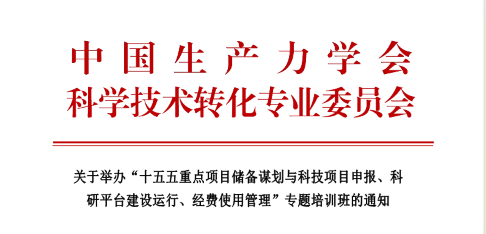 2025年全國科技工作會議指出要加強戰略規劃、政策措施、重大任務、科研力量、資源平臺、區域創新等方面的統籌,推進教育科技人才體制機制一體改革,完善科技評價機制,打通科技成果向現實生產力轉化通道,扎實推進科技強國建設。為幫助相關企事業單位深入了解2025年國家科技創新相關配套政策,提升項目申報、經費支出控制、項目綜合績效評價等業務能力,中國生產力學會科學技術轉化專業委員會擬于2025年8月6-9日成都、9月10-13日西安分期舉辦“十五五重點項目儲備謀劃與科技項目申報、科研平臺建設運行、經費使用管理”專題培訓班。