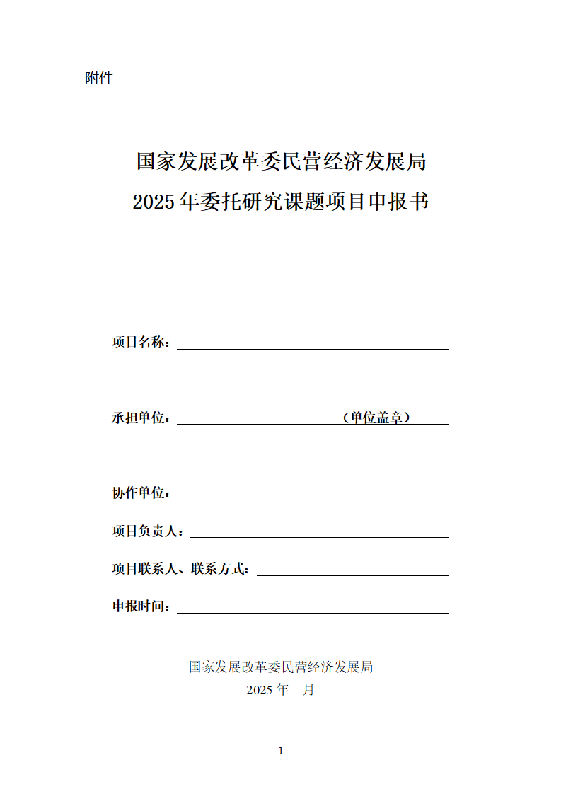 附件:國家發展改革委民營經濟發展局2025年委托研究課題項目申報書