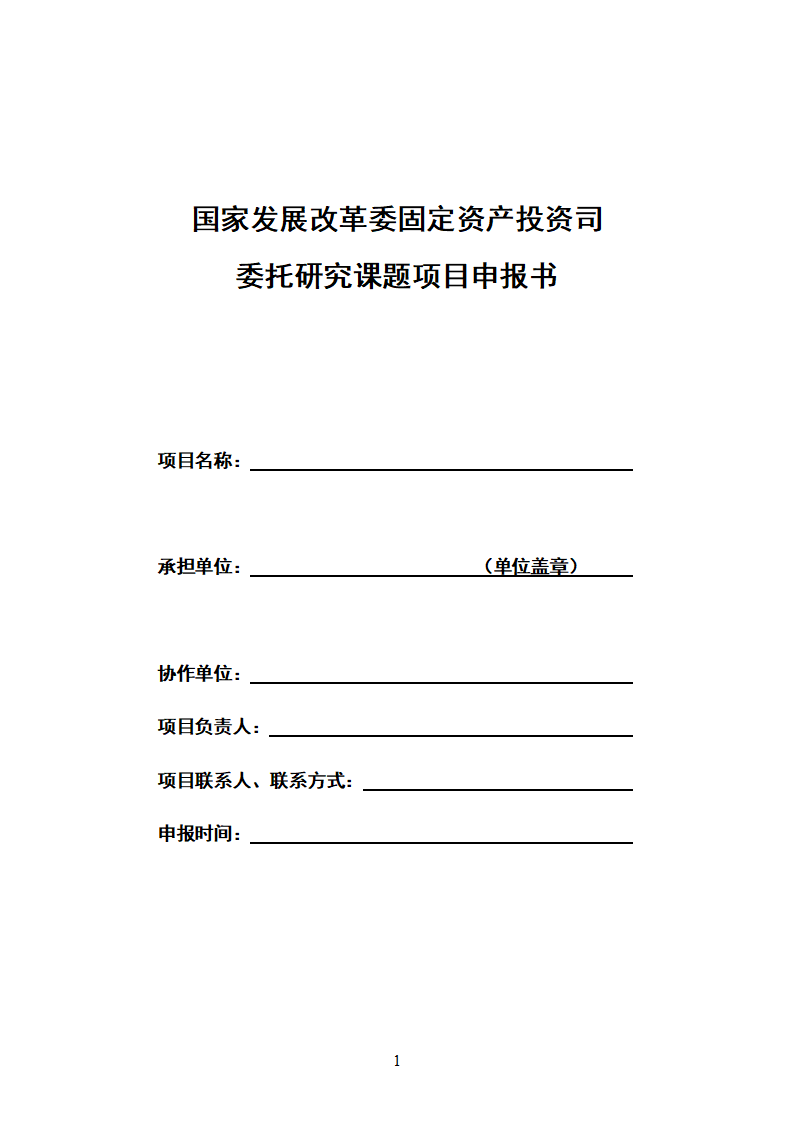 附件:國家發(fā)展改革委固定資產(chǎn)投資司委托研究課題項(xiàng)目申報(bào)書
