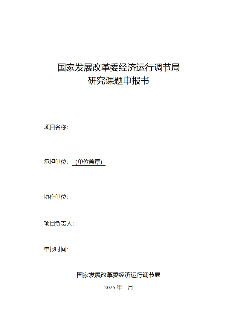 附件:國家發展改革委經濟運行調節局研究課題申報書