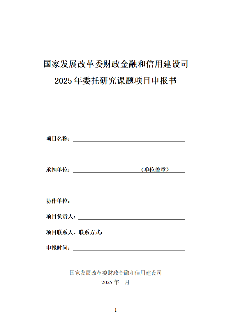 附件:國家發展改革委財政金融和信用建設司2025年委托研究課題項目申報書
