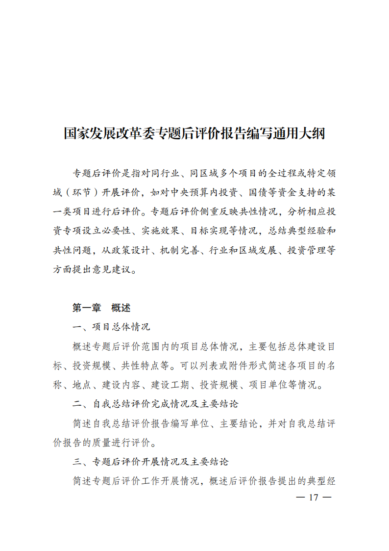國家發(fā)改委|關(guān)于印發(fā)國家發(fā)展改革委重大項(xiàng)目后評(píng)價(jià)報(bào)告編寫通用大綱的通知