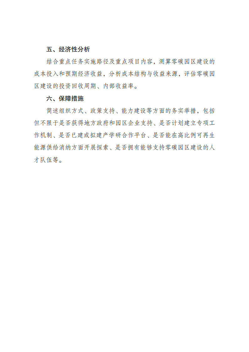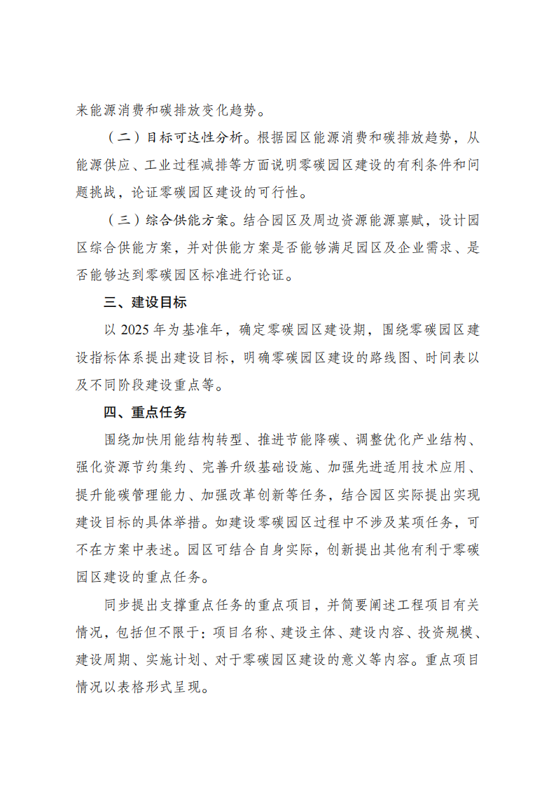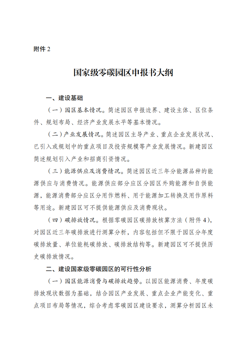 ??(二)組織園區申報。在綜合考慮能源稟賦、產業基礎、電力安全可靠供應、減碳潛力等因素基礎上,各地區發展改革委要會同本地區工業和信息化、能源主管部門等推薦有條件、有意愿的園區建設國家級零碳園區(基本條件見附件1),并指導園區綜合分析項目可行性,測算經濟、環境、社會效益,按要求編制申報書(大綱見附件2)。各地區推薦園區數量不超過2個,于8月22日前將推薦園區名單及建設方案報送國家發展改革委(環資司)。