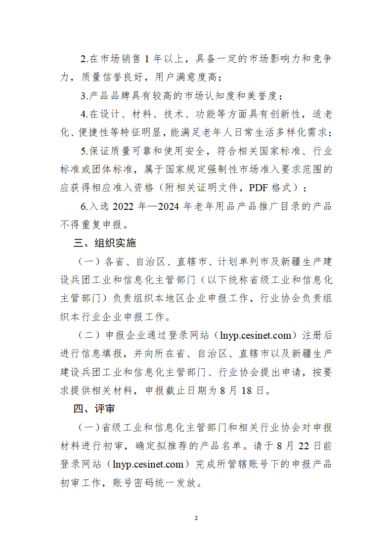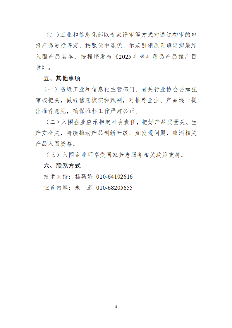 各有關部門、單位要完善工作推進機制,加強統籌協作,緊密結合六大重點任務部署工作,組織開展豐富多樣的“惠老助企”活動。要及時總結經驗做法和典型案例,全方位、多維度反映活動成效,有關總結材料于2026年1月底前反饋工業和信息化部(消費品工業司),電子版發送至zhurui@miit.gov.cn。《老年用品產品推廣目錄》申報工作將與本活動同步開展,請各地工業和信息化主管部門、行業協會按申報指引和申報書(見附件)要求組織申報。