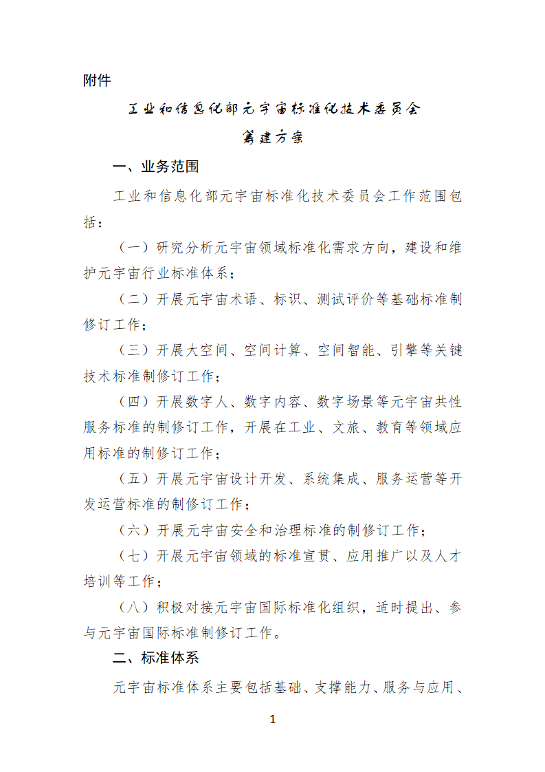 工業和信息化部元宇宙標準化技術委員會籌建方案公示