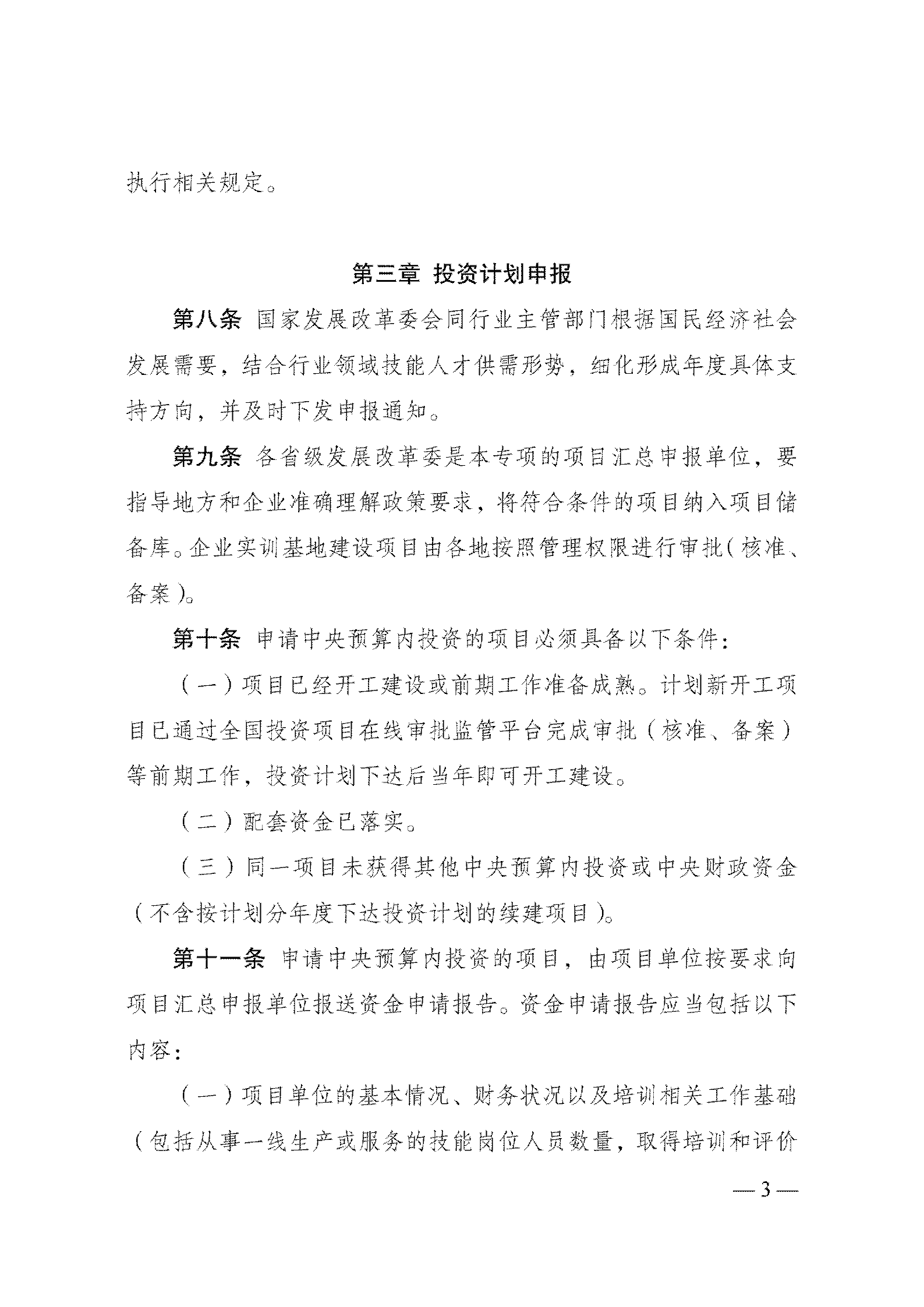國家發展改革委關于印發 《教育強國和就業促進專項企業實訓基地領域 中央預算內投資專項管理辦法》的通知