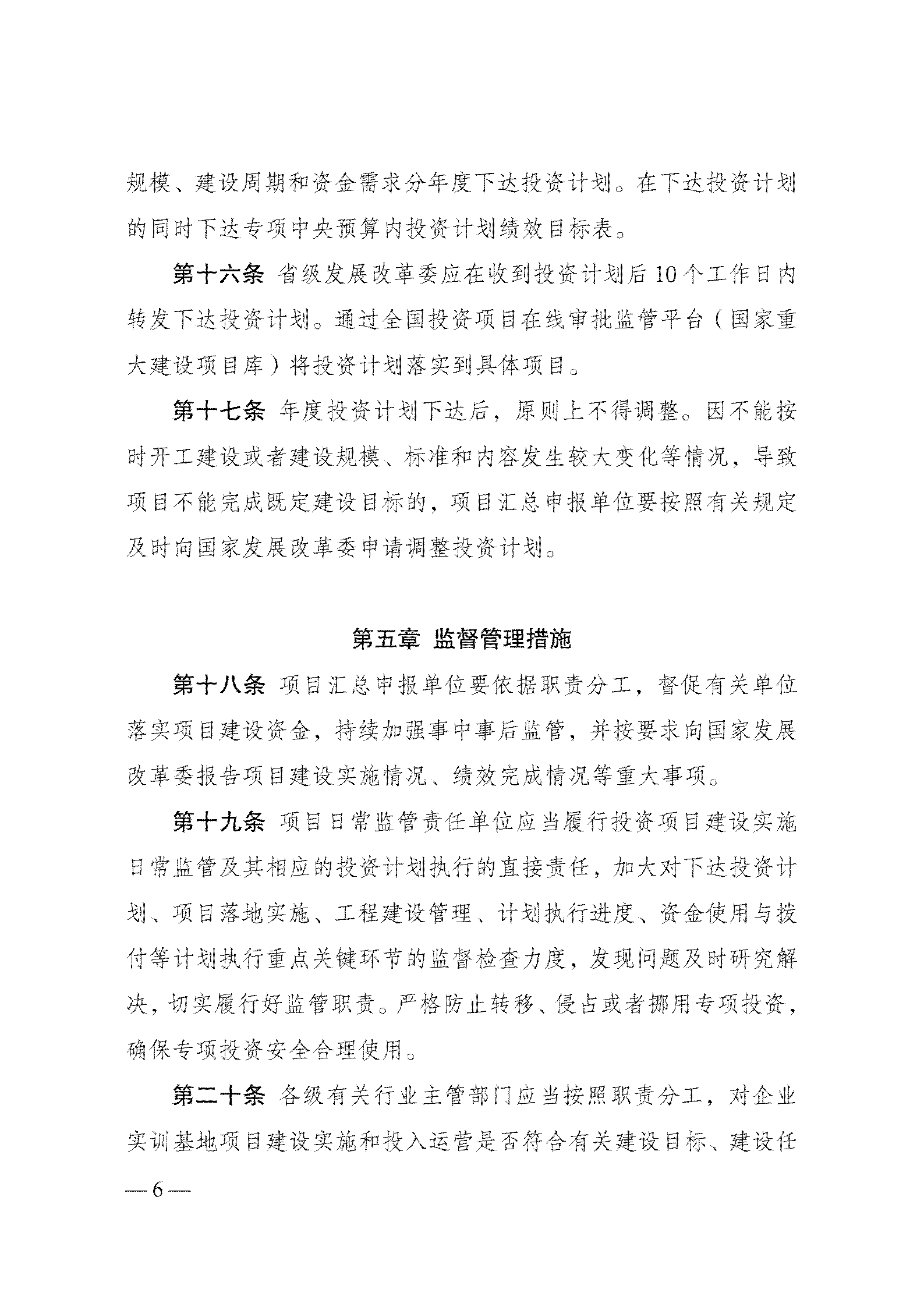 國家發展改革委關于印發《教育強國和就業促進專項企業實訓基地領域中央預算內投資專項管理辦法》的通知