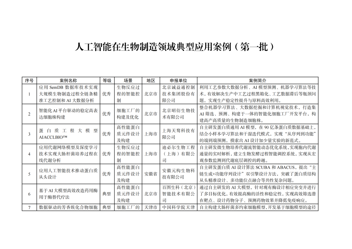 工業和信息化部辦公廳關于印發人工智能在生物制造領域典型應用案例(第一批)的通知