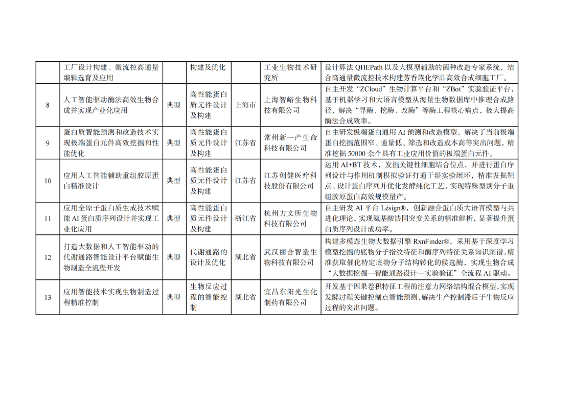 為貫徹落實黨中央、國務院關于發展生物制造決策部署,根據《工業和信息化部辦公廳關于開展智能技術在生物制造領域典型應用案例征集工作的通知》(工信廳消費函〔2024〕394號),經省級工業和信息化主管部門推薦、專家評價、網上公示等程序,現將“人工智能在生物制造領域典型應用案例(第一批)”印發給你們,請進一步推動人工智能與生物制造深度融合,促進生物制造全產業鏈提質升級。
