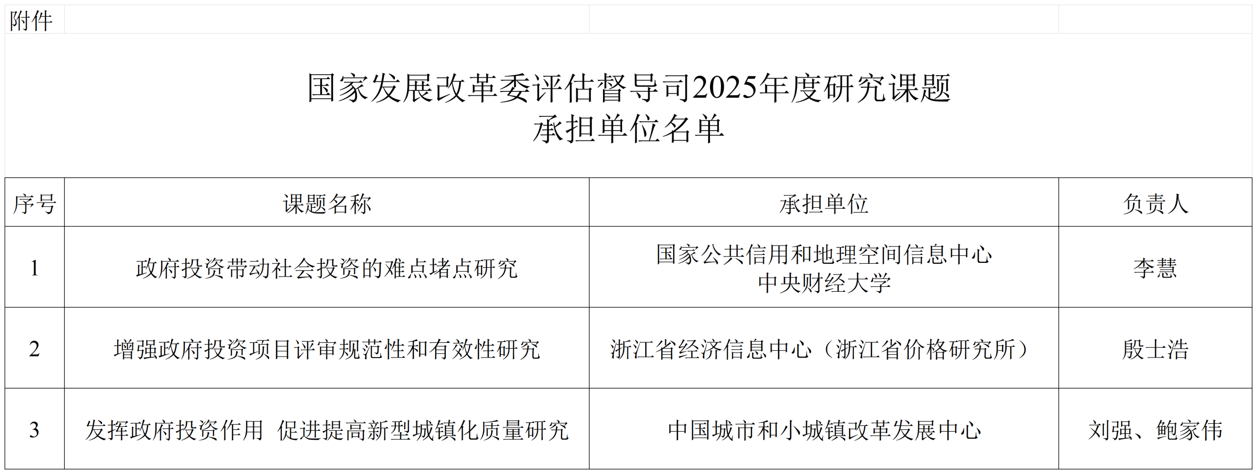 國家發(fā)展改革委評估督導(dǎo)司關(guān)于2025年度研究課題入選單位的公告
