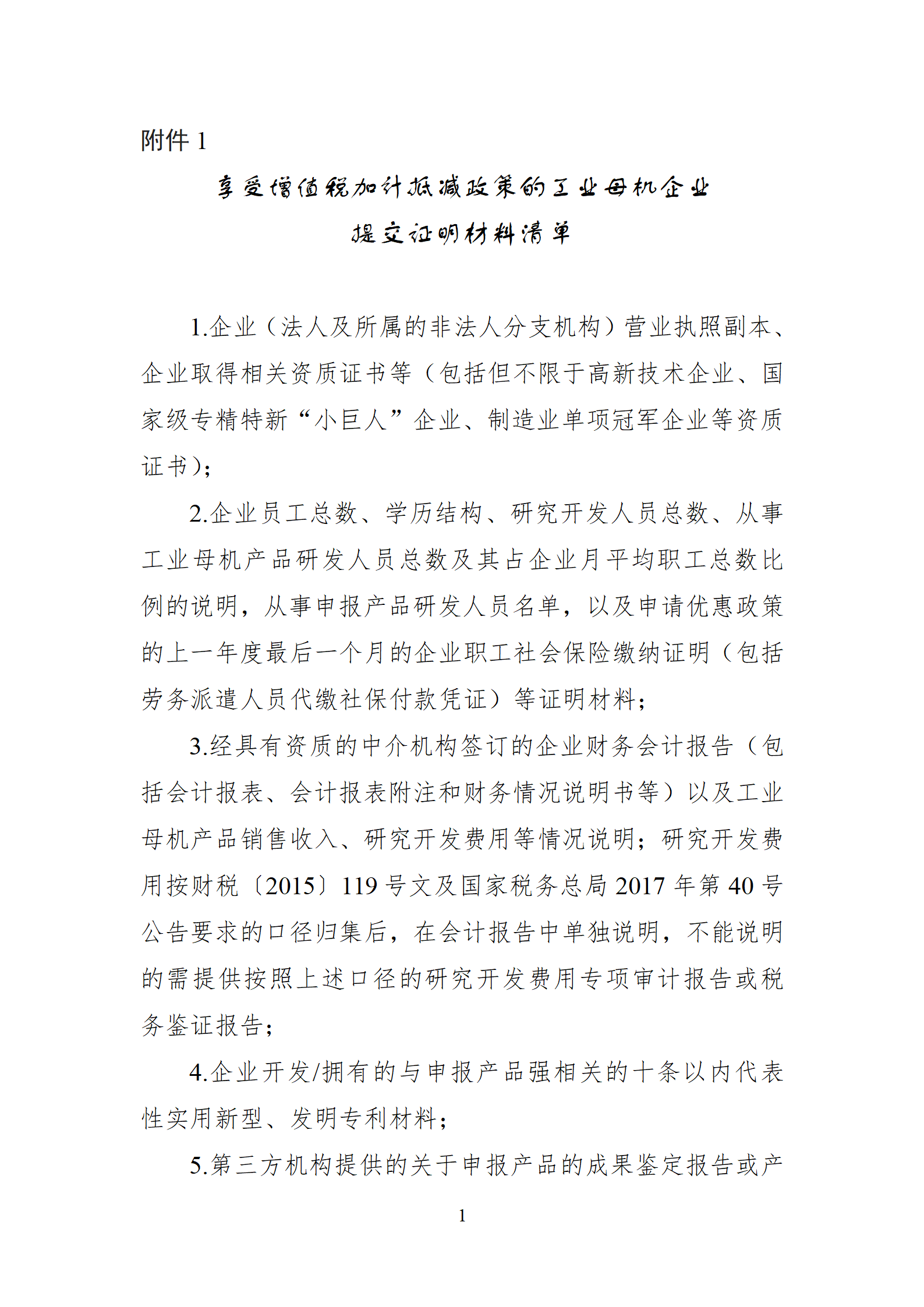 附件:1.享受增值稅加計抵減政策的工業母機企業提交證明材料清單.wps