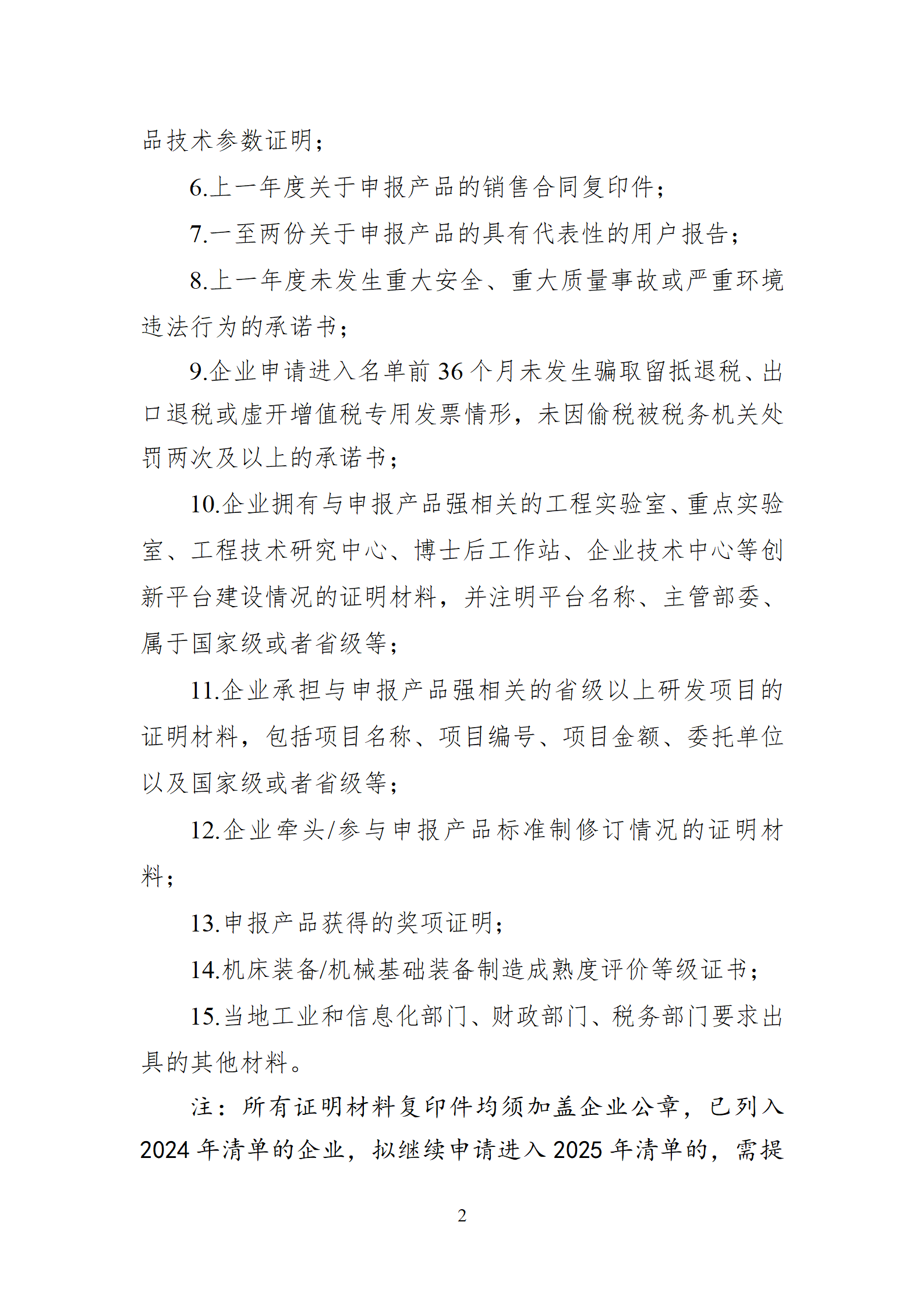 二、申請列入清單的企業(含所屬的非法人分支機構)應于2025年8月31日前在信息填報系統(www.gymjtax.com)中提交申請,并生成紙質文件加蓋企業公章,連同必要佐證材料(電子版、紙質版)報各省、自治區、直轄市及計劃單列市、新疆生產建設兵團工業和信息化主管部門(以下稱地方工信部門)。已列入2024年清單的企業,擬繼續申請進入2025年清單的,須重新提交《享受增值稅加計抵減政策的工業母機企業提交證明材料清單》(附件1)中第2、3、6、8、9項。