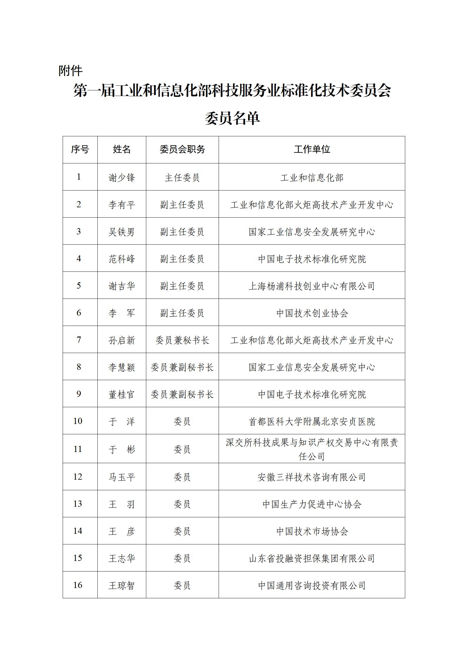 附件:第一屆工業和信息化部科技服務業標準化技術委員會委員名單