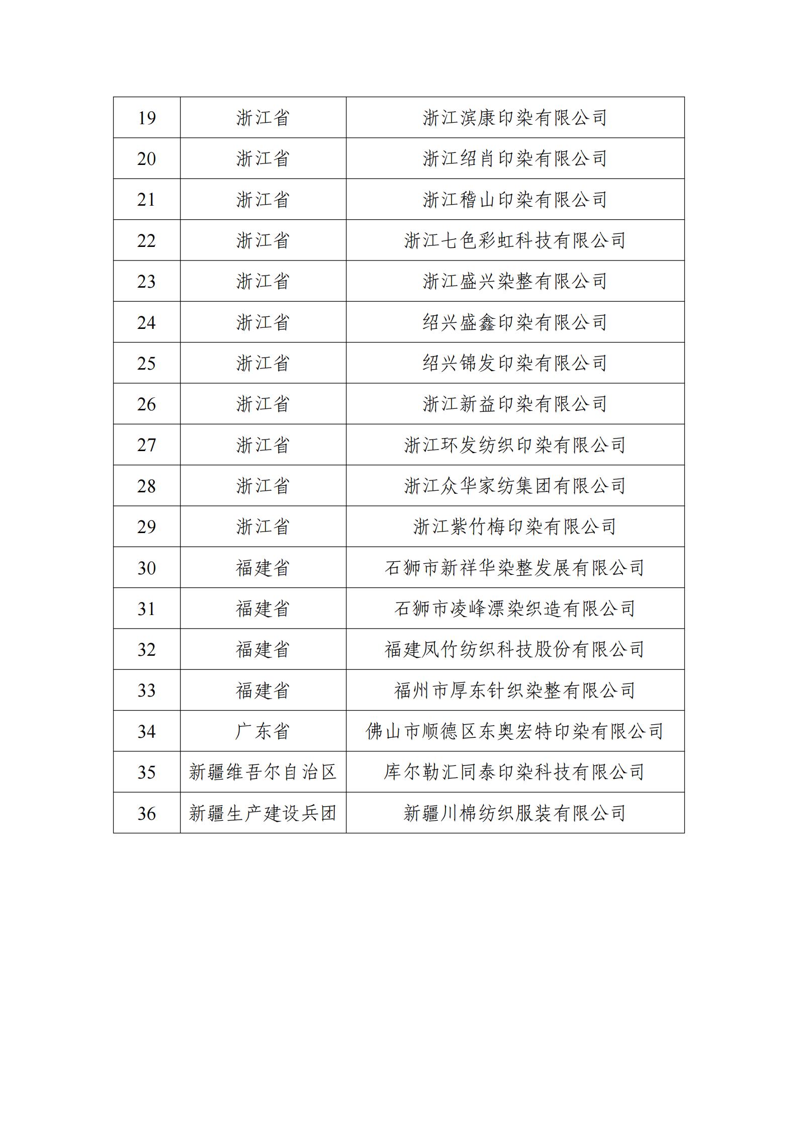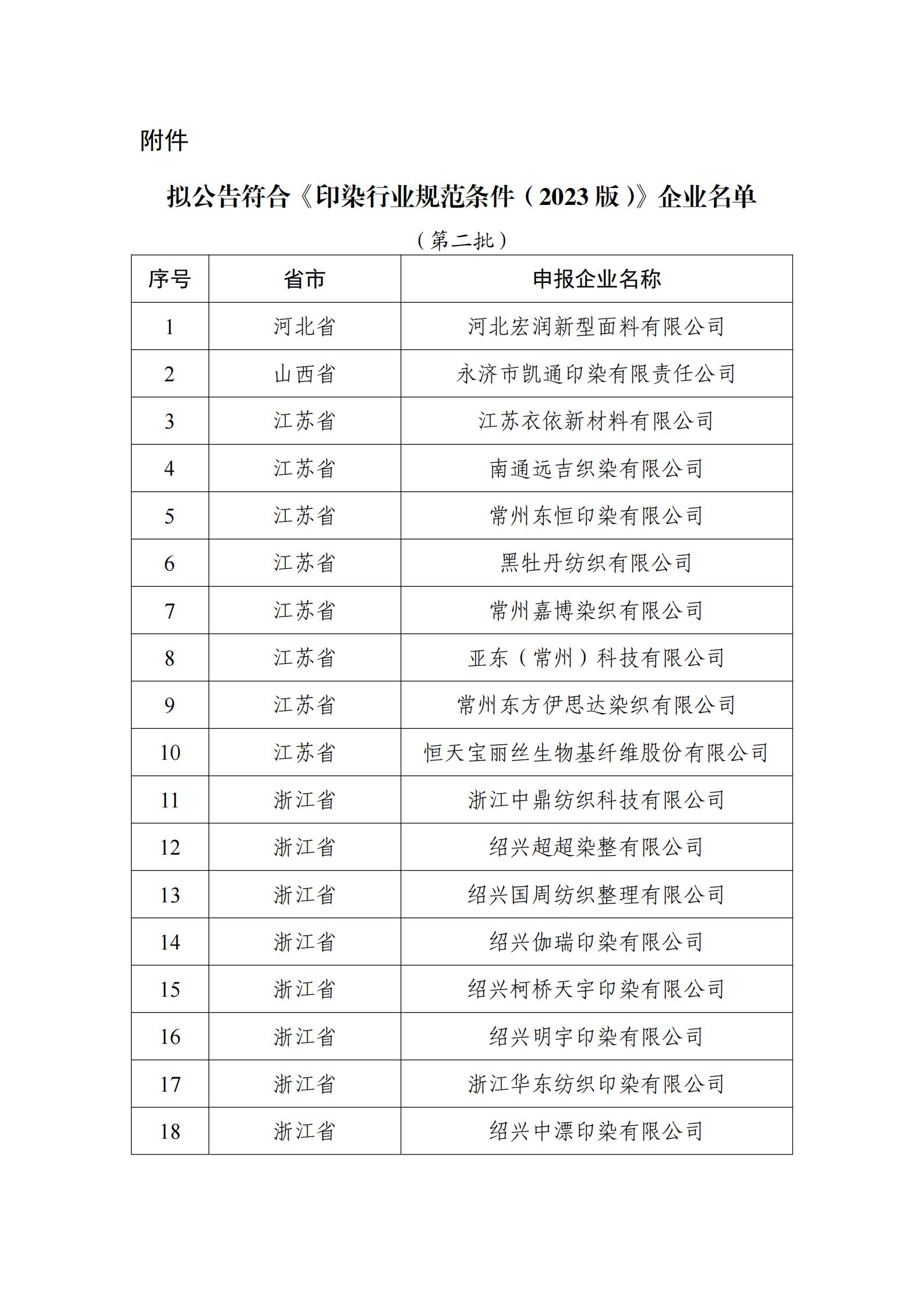 附件:擬公告的符合《印染行業規范條件(2023版)》企業名單(第二批)