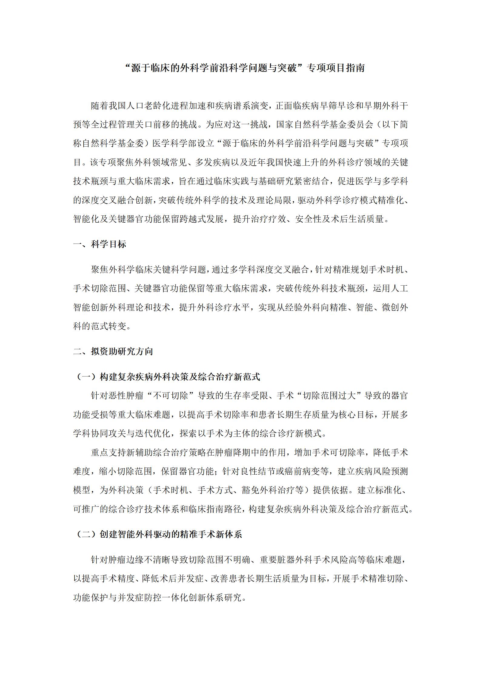 1.“源于臨床的外科學前沿科學問題與突破”專項項目指南
