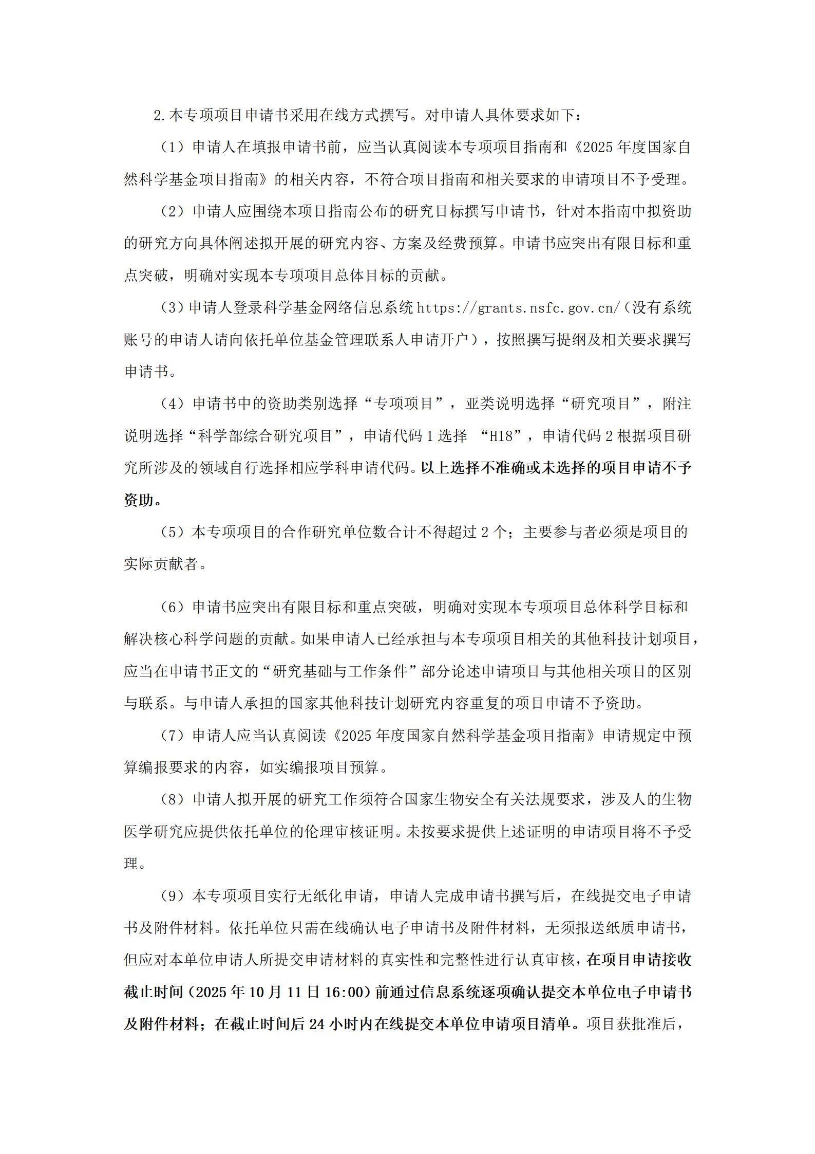 國家自然科學基金委員會醫學科學部現發布2025年度專項項目指南(第一批),請申請人和依托單位按項目指南中的要求及注意事項申請。