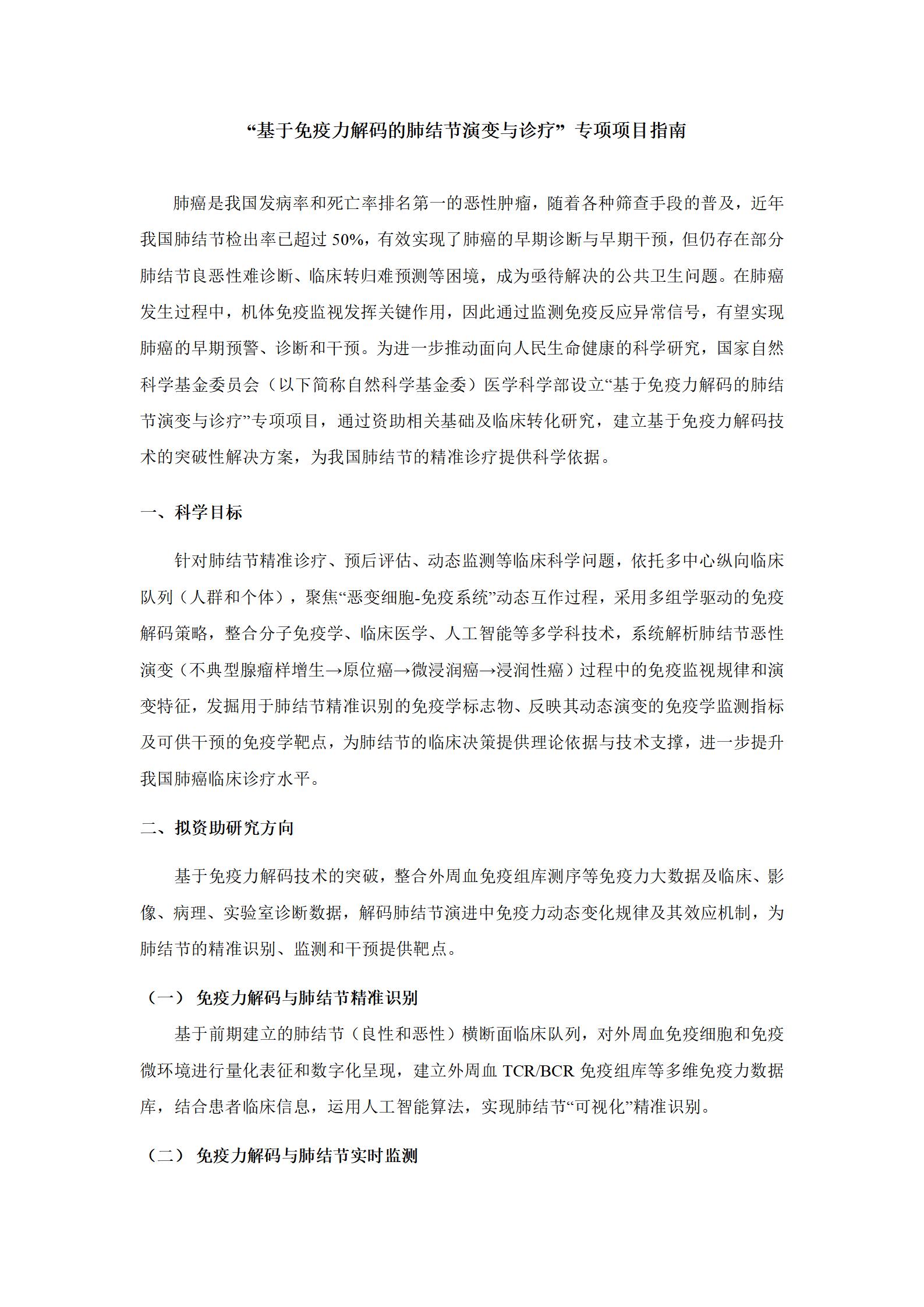 2.“基于免疫力解碼的肺結節演變與診療” 專項項目指南