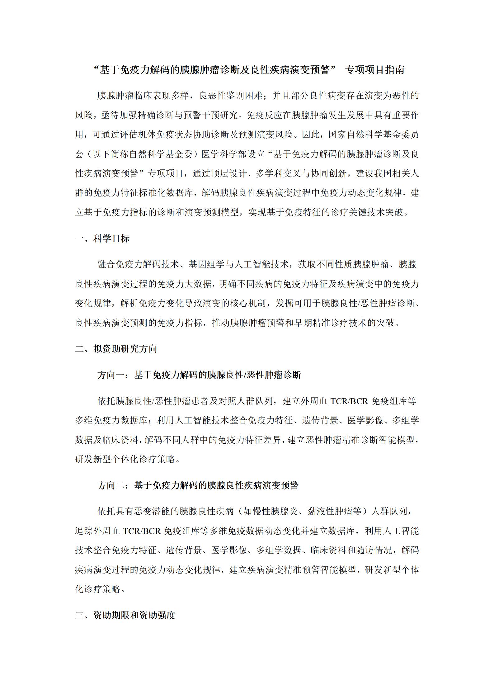 3.“基于免疫力解碼的胰腺腫瘤診斷及良性疾病演變預警” 專項項目指南