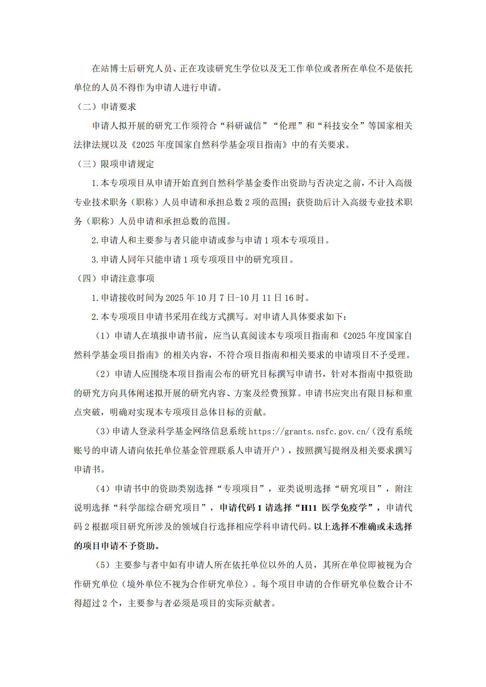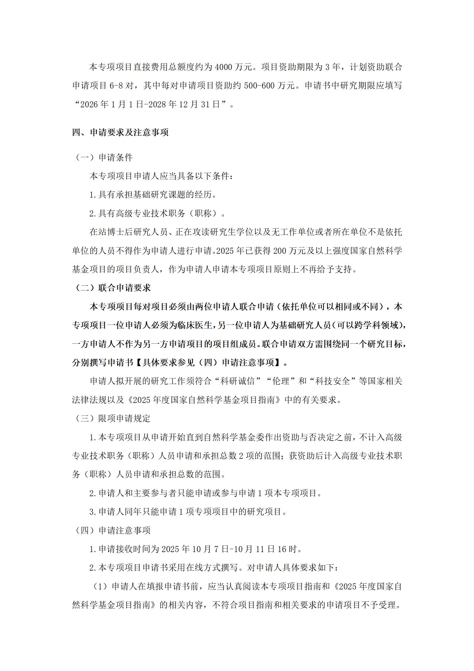 關于發布醫學科學部2025年度專項項目指南 (第一批)的通告