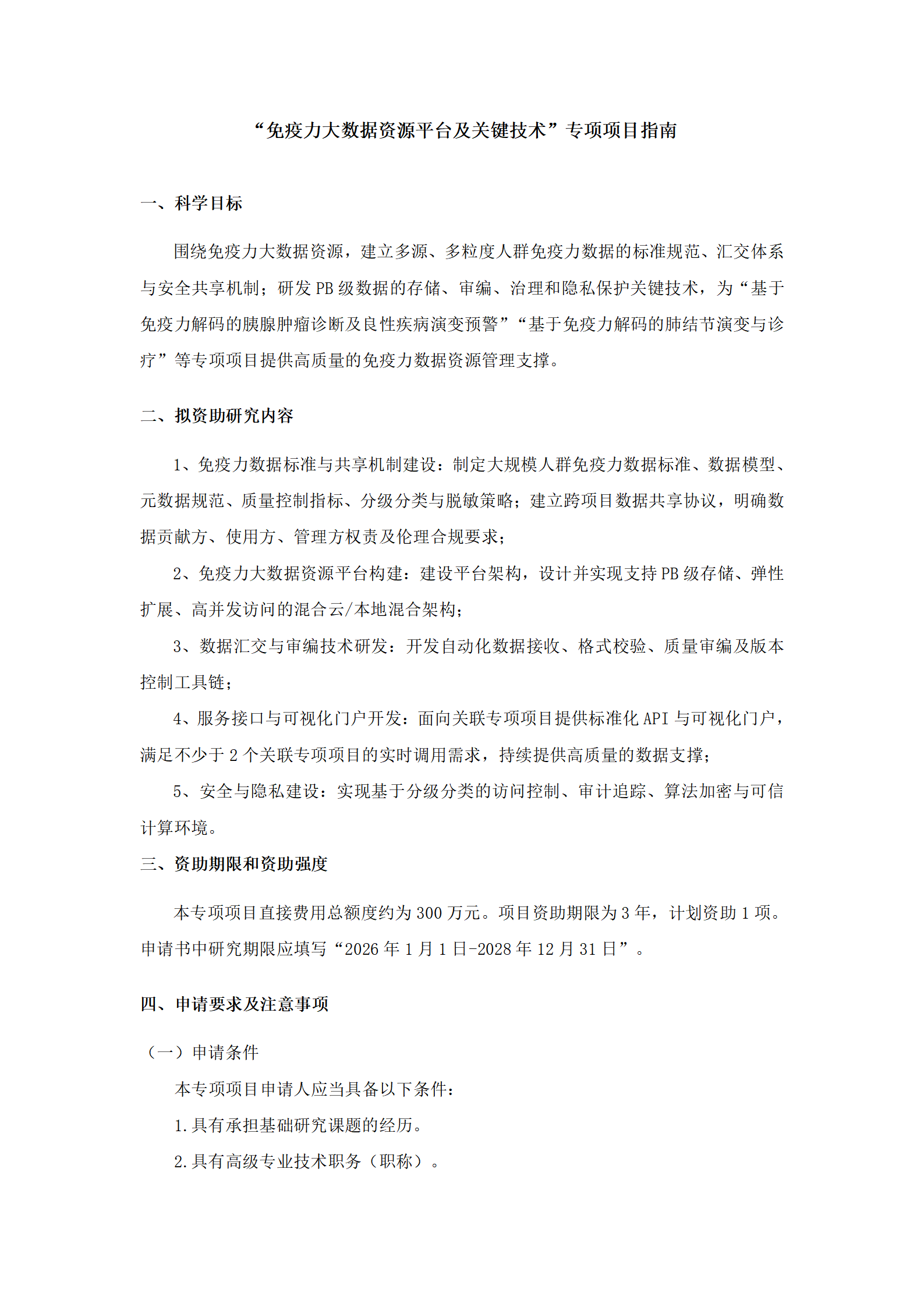 4.“免疫力大數據資源平臺及關鍵技術”專項項目指南