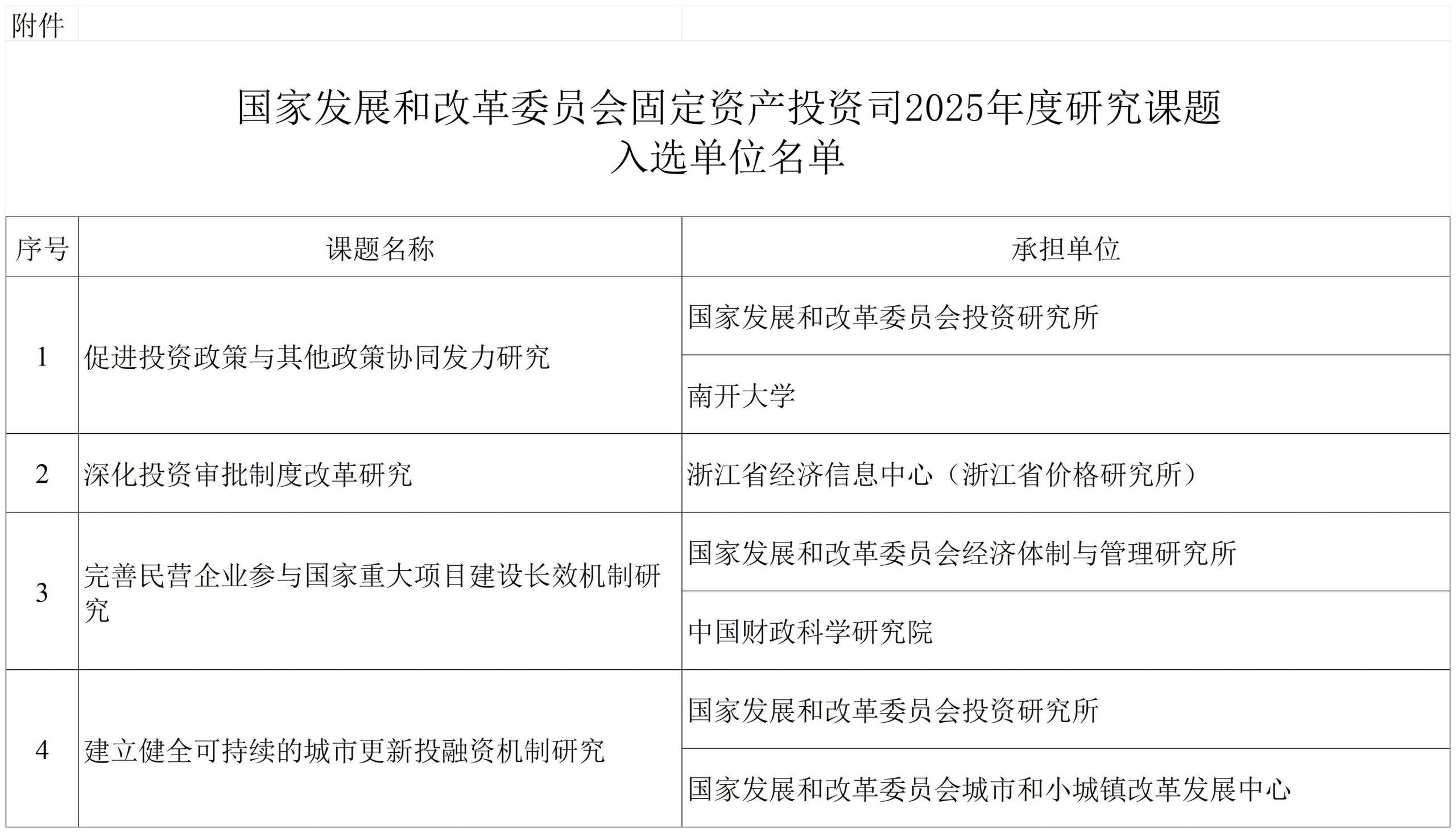 國家發(fā)展改革委固定資產投資司關于2025年度研究課題入選單位的公告