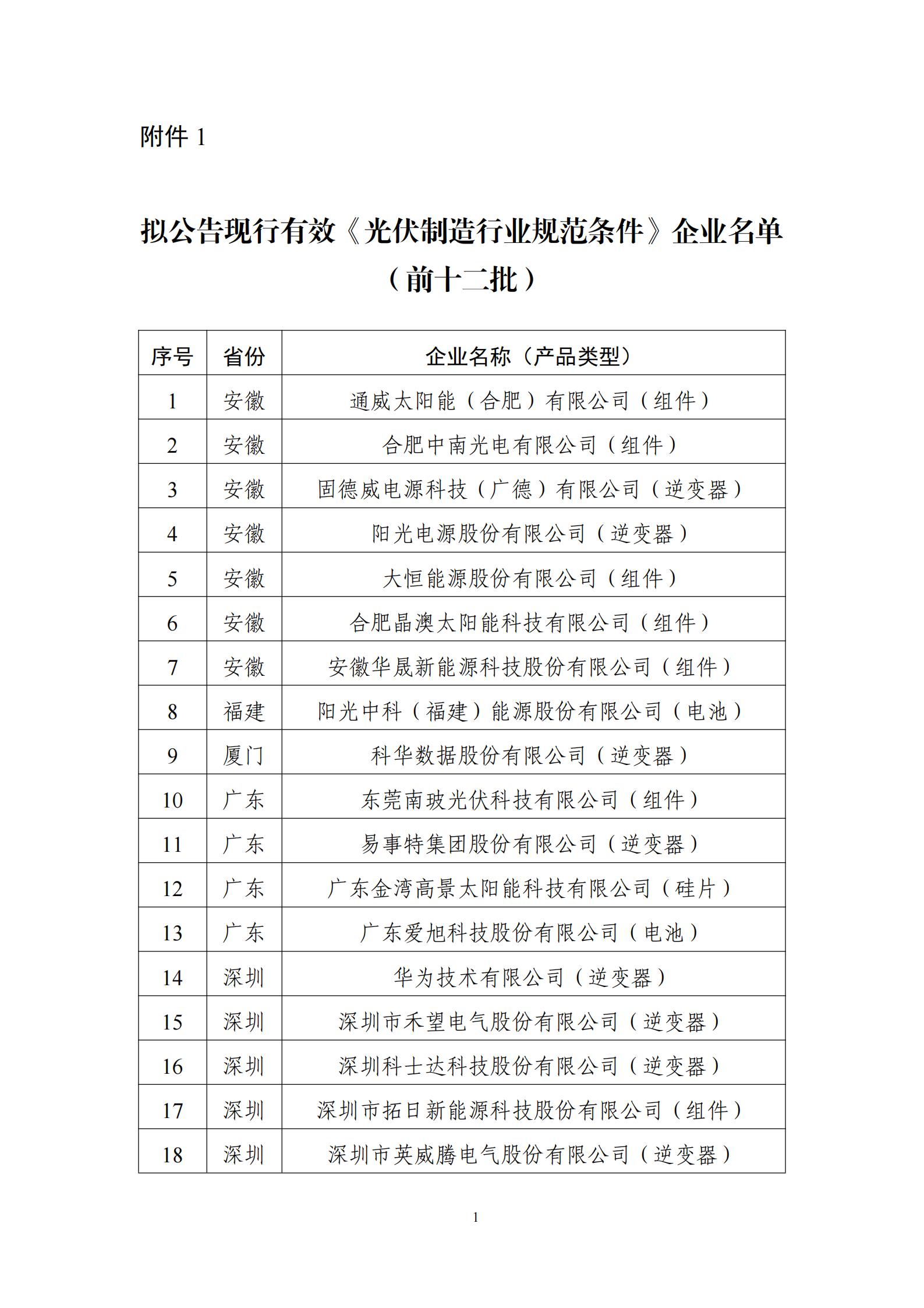 擬公告現(xiàn)行有效符合《光伏制造行業(yè)規(guī)范條件》企業(yè)名單(前十二批)公示