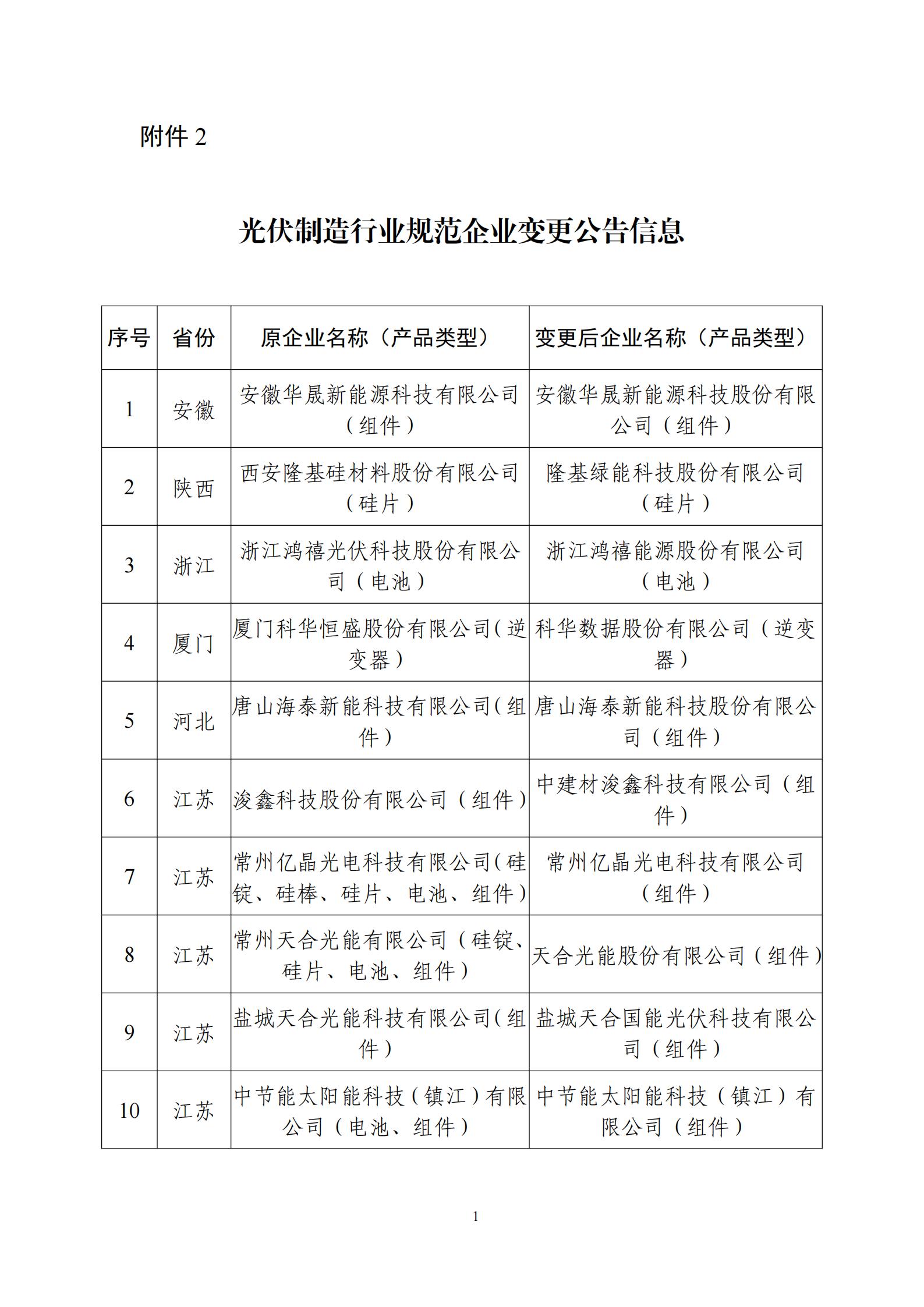 2.光伏制造行業(yè)規(guī)范企業(yè)變更公告信息