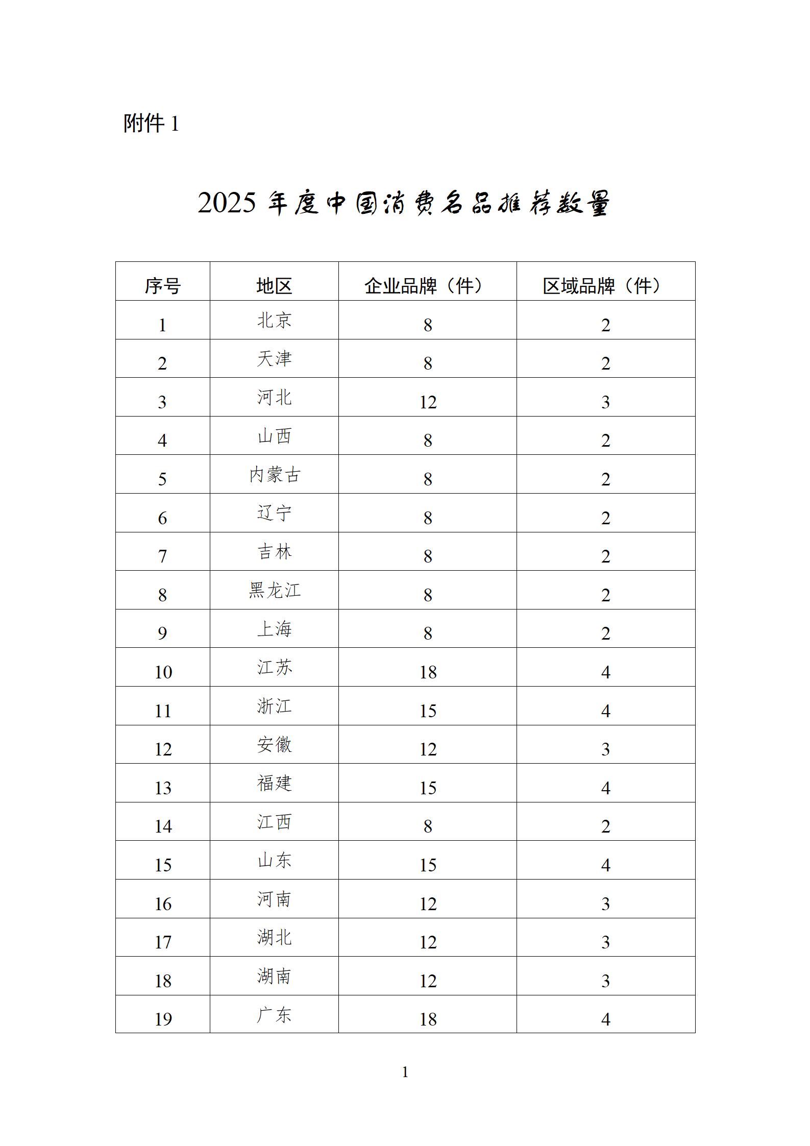 各地消費名品推薦數量見附件,適老化產品、助殘產品、婦幼產品等特定人群適用產品推薦數量不受限制。