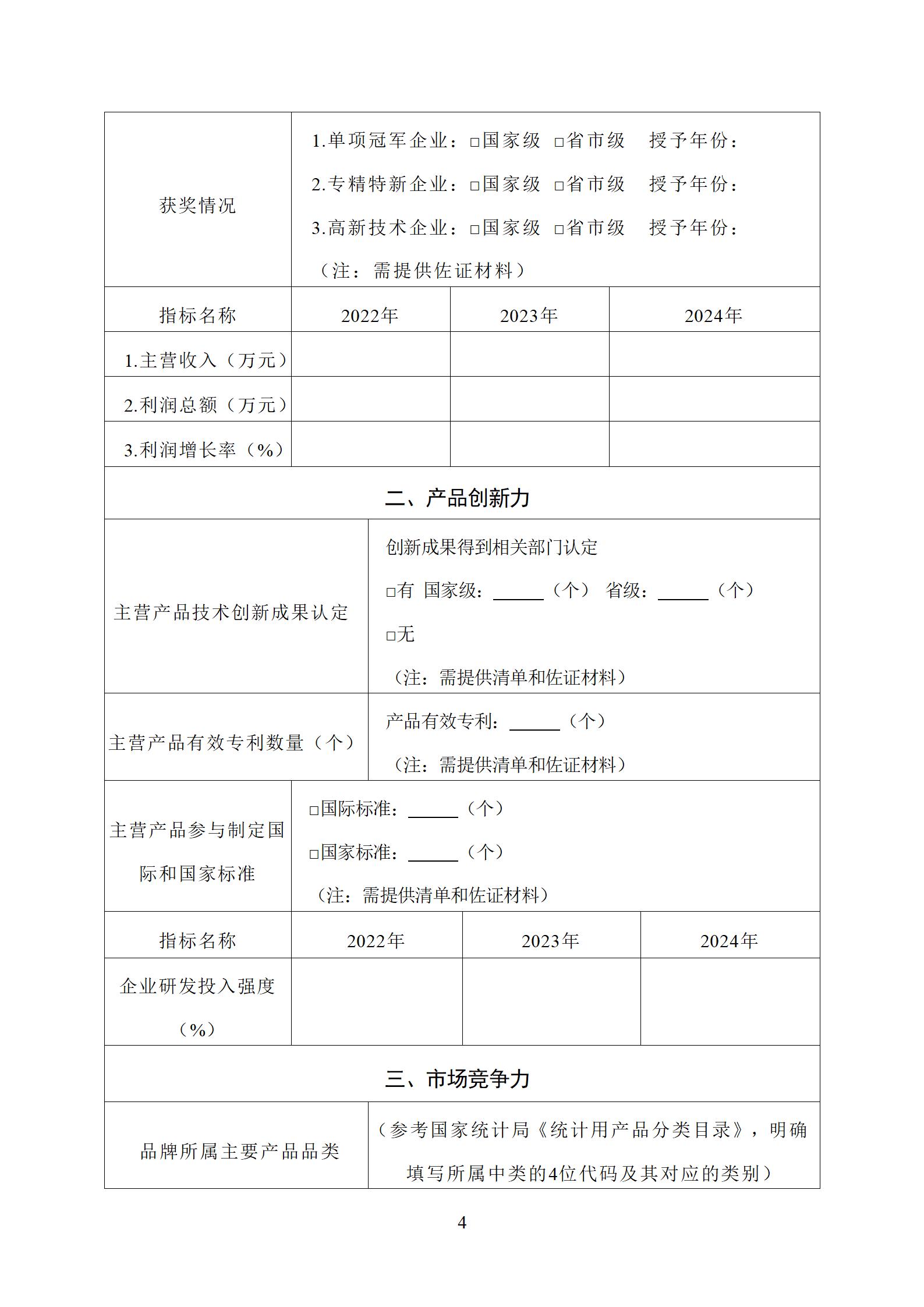 (一)基本條件。企業品牌:申報主體應為在中華人民共和國境內注冊登記的企業單位;具有獨立法人資格,企業營業收入在2億以上,近3年經營狀況良好,在信用、質量、安全和環保等方面無不良記錄;自主創建申報品牌,擁有商標所有權、且在有效期內。區域品牌:申報主體應為中華人民共和國境內的地級或縣級行政區,近3年無重大質量安全等事故。