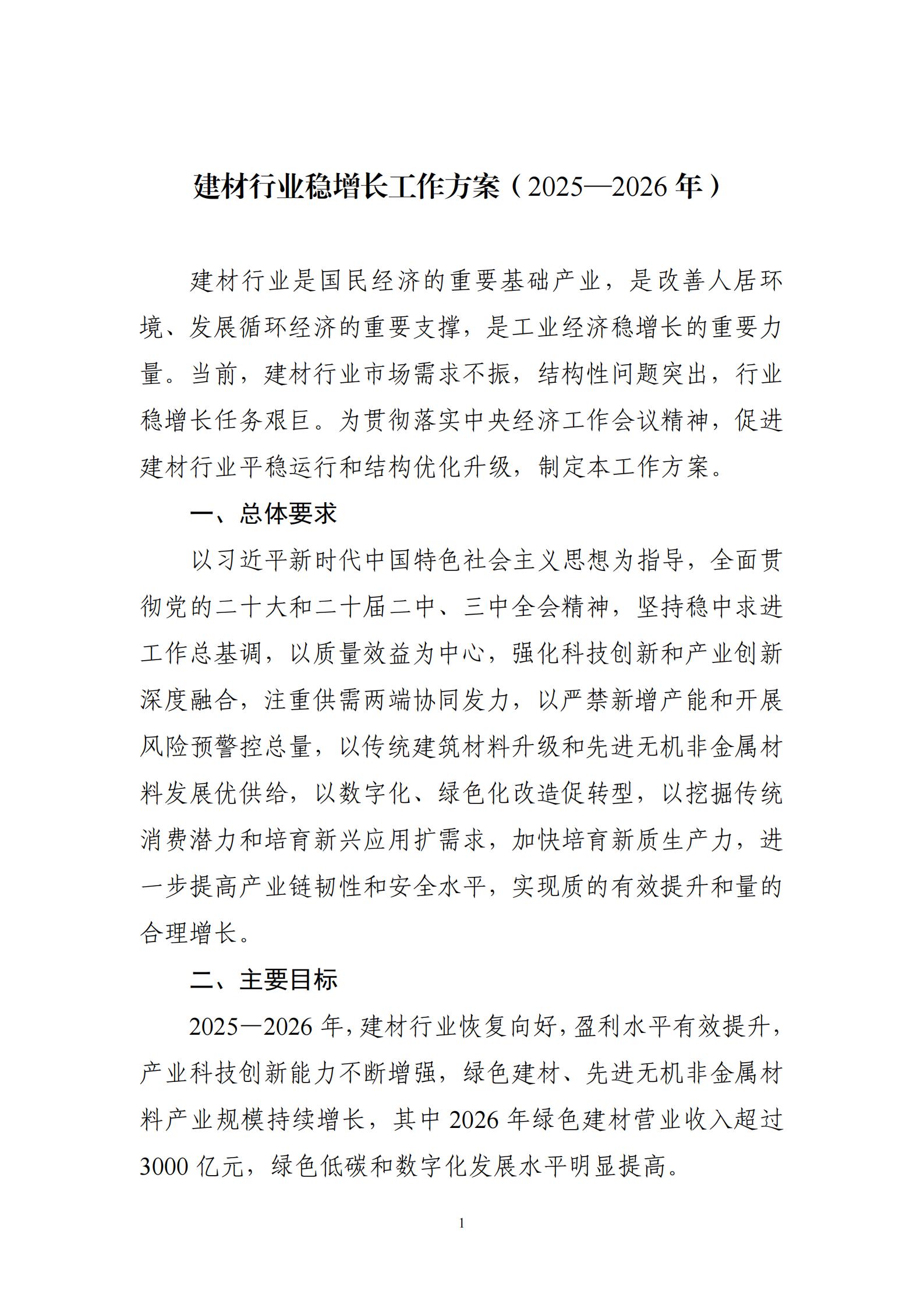 現將《建材行業穩增長工作方案(2025—2026年)》印發給你們,請結合實際認真抓好落實。