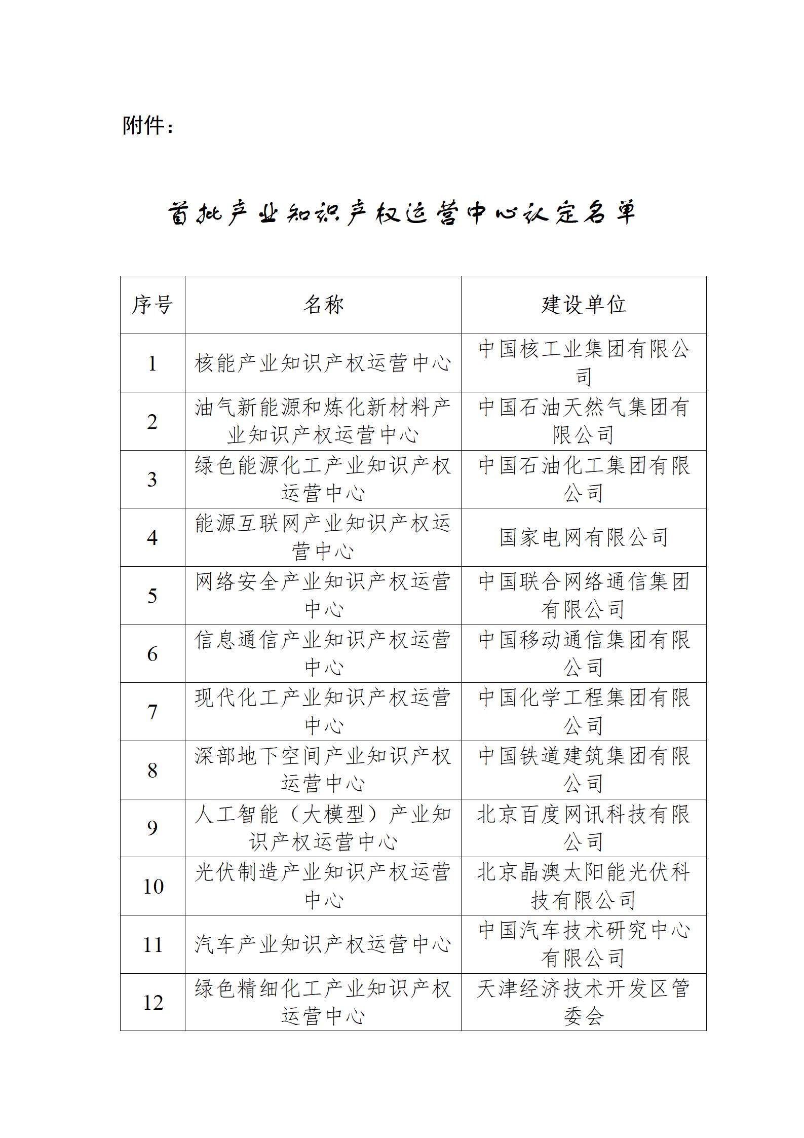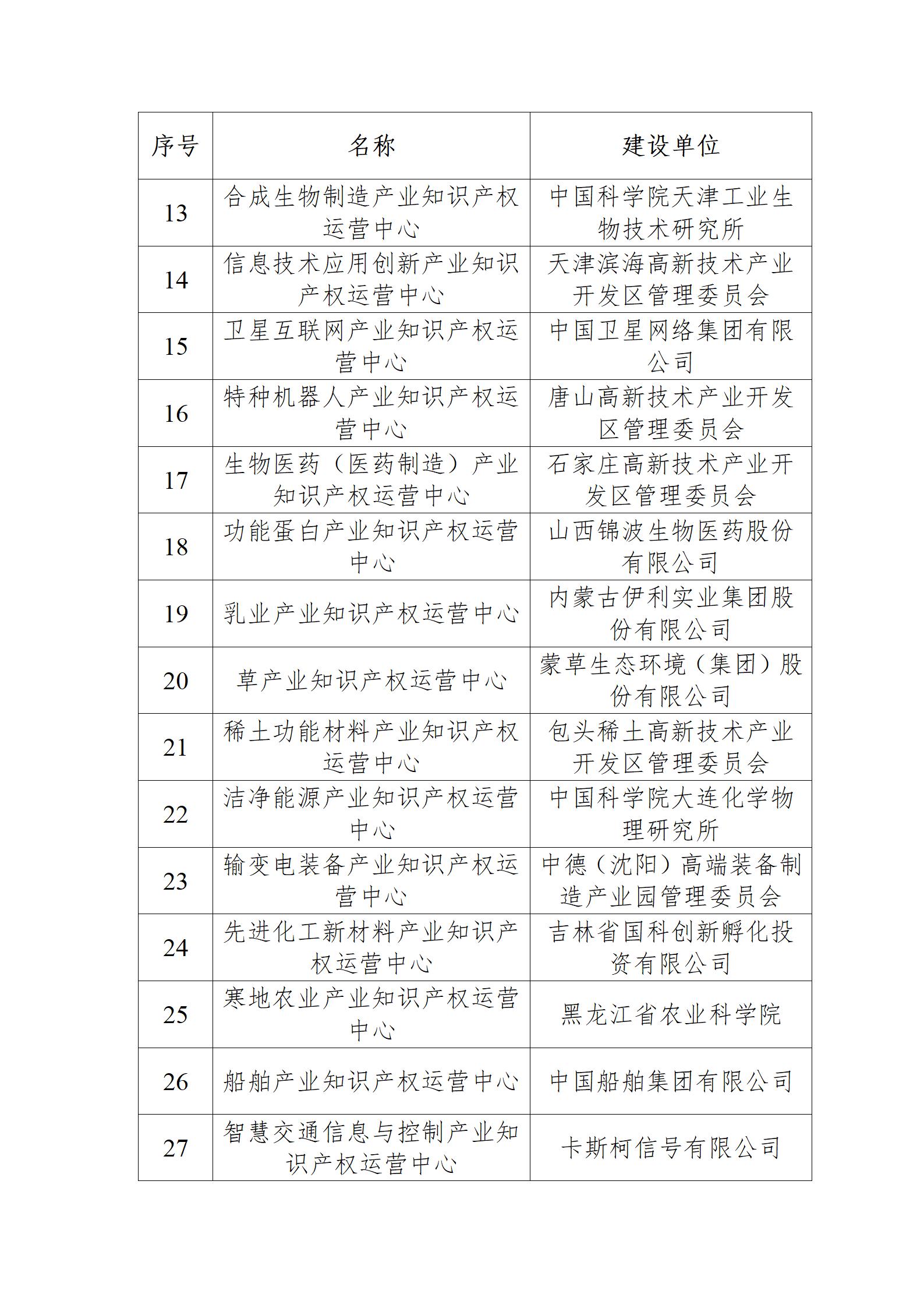關于首批產業知識產權運營中心認定名單的公示