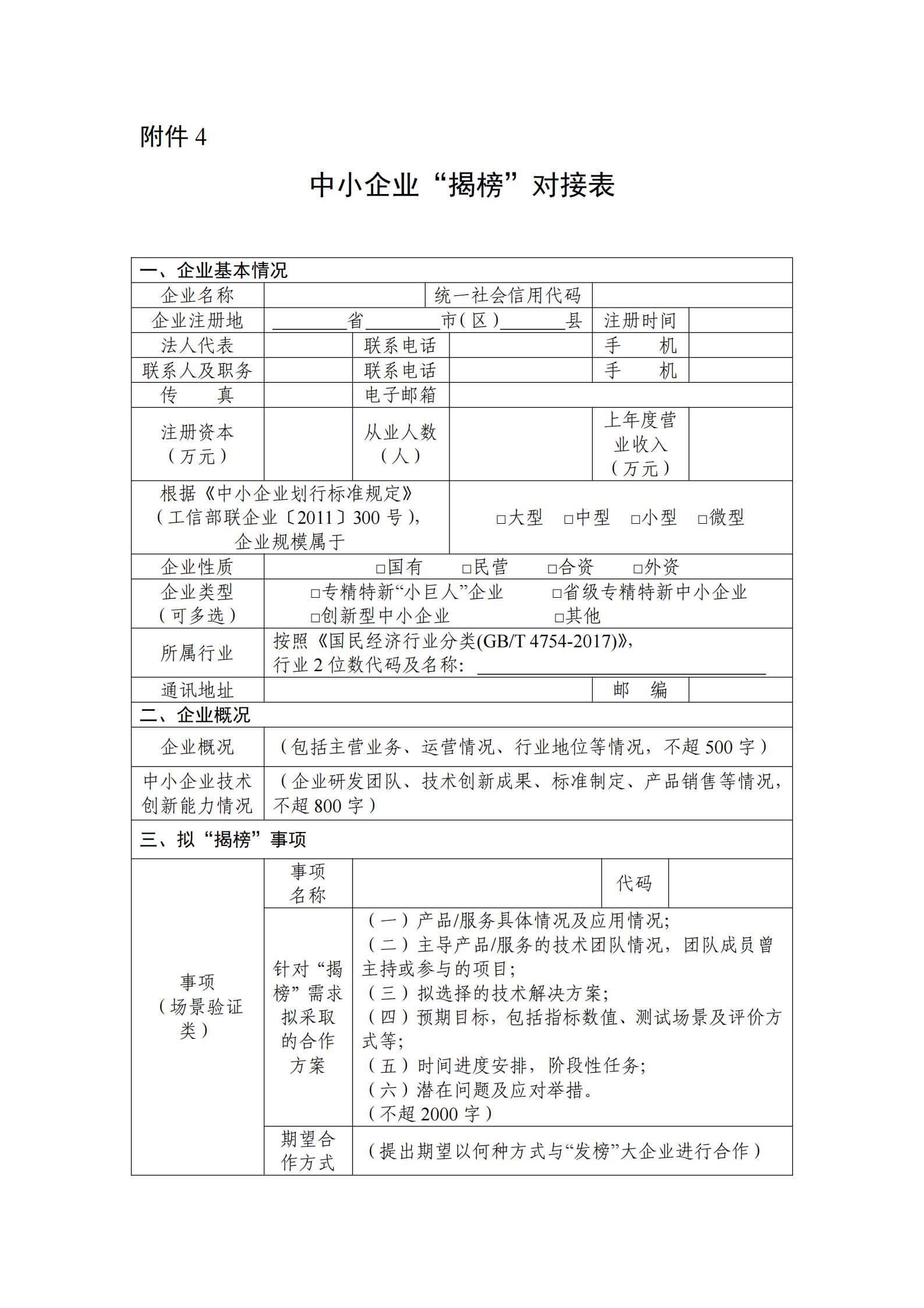 (三)注重工作協同。省級中小企業主管部門要以開展“揭榜”“發榜”工作為契機,與“百場萬企”融通對接、“一月一鏈”融資促進、“一起益企”、“中小企業服務月”等活動相互協同,通過線上線下相結合的方式豐富對接形式,提升對接效率,推動大中小企業融通創新工作進一步提質擴面,構建大中小企業相互依存、相互促進的融通創新生態。