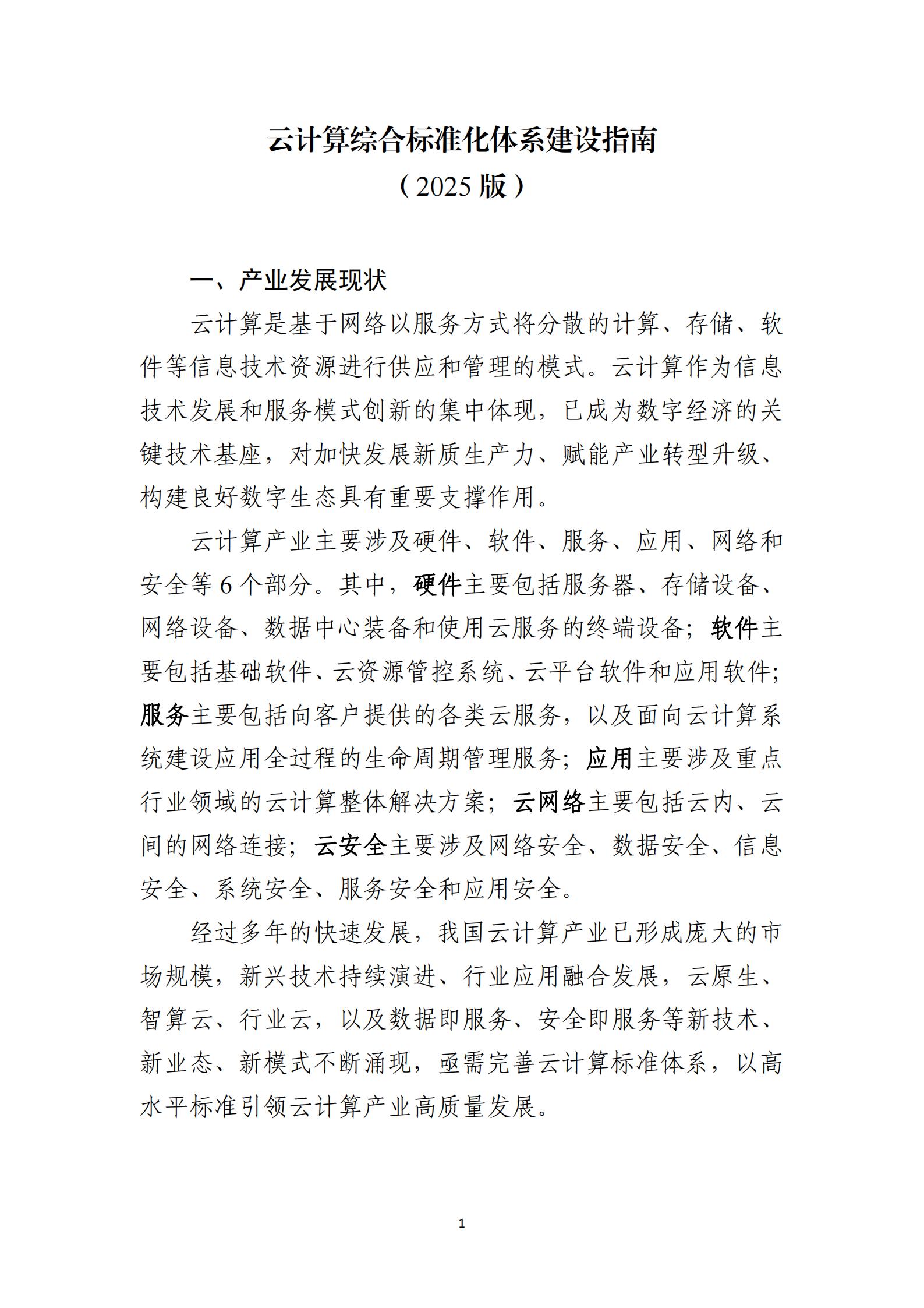 兩部門關于印發《云計算綜合標準化體系建設指南(2025版)》的通知