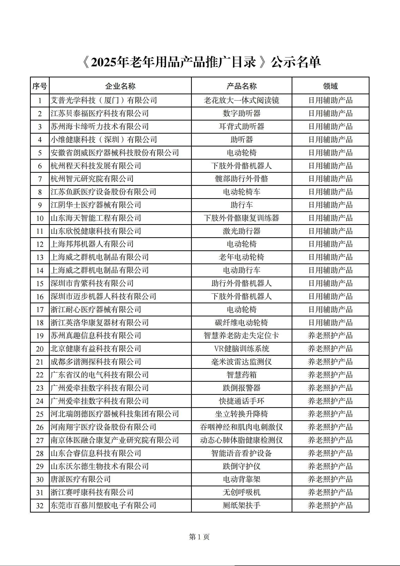 附件:《2025年老年用品產品推廣目錄》公示名單