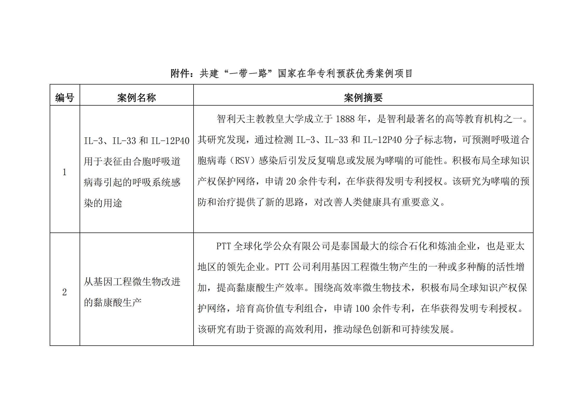 附件:共建“一帶一路”國家在華專利預(yù)獲優(yōu)秀案例項目